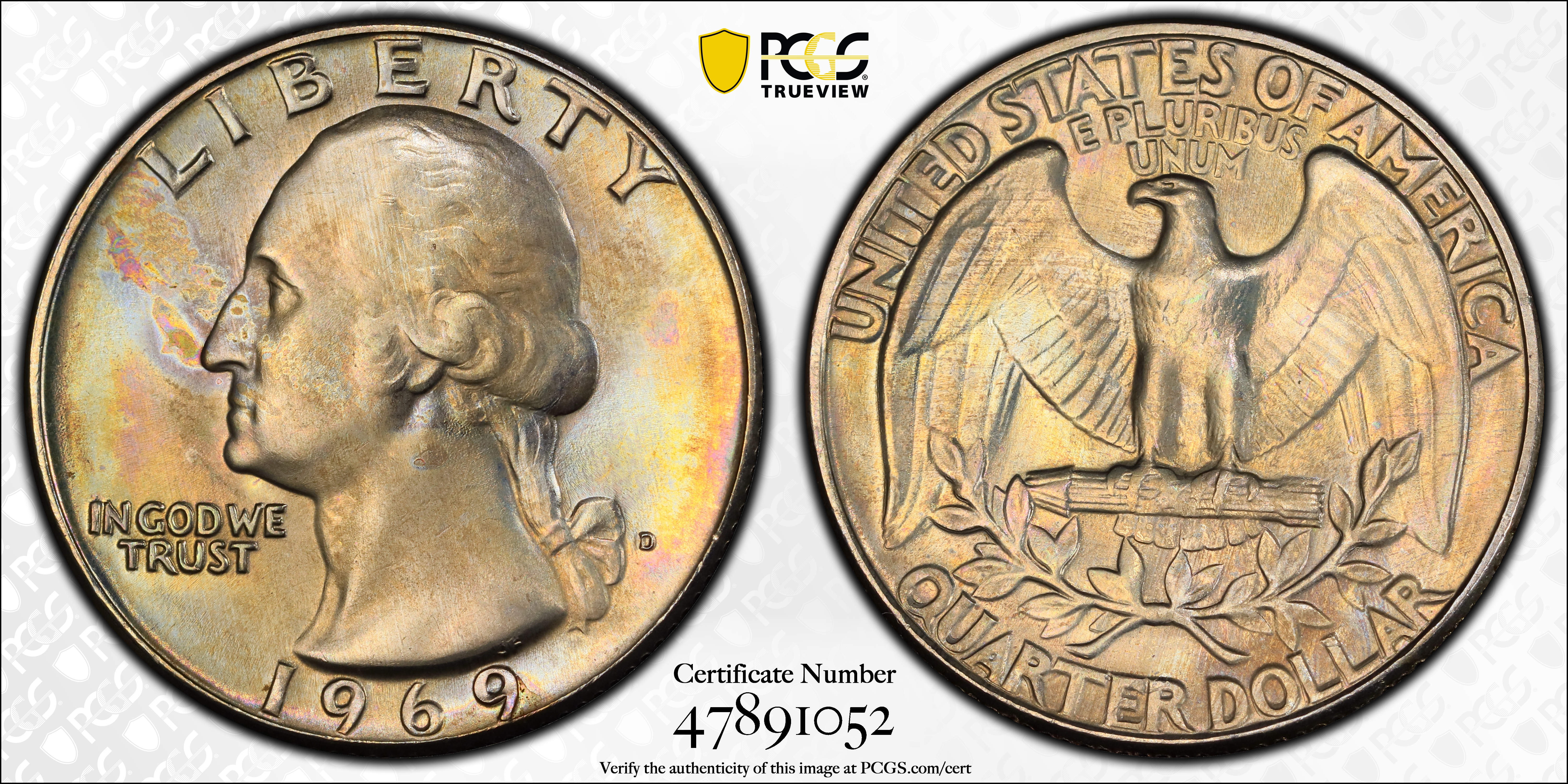 1969-D 25C MS67 认证号47891052, PCGS号5884