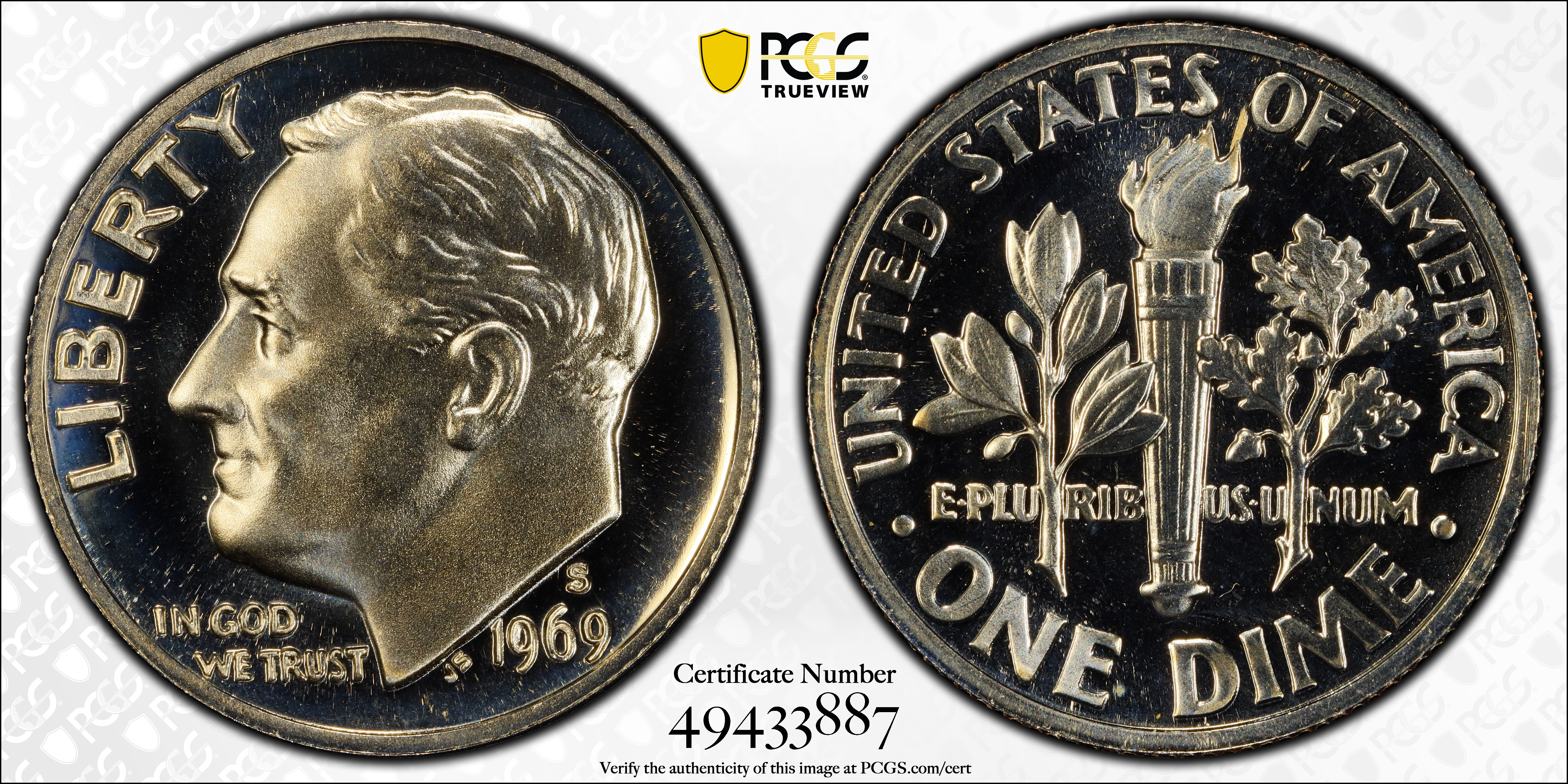 1969-S 10C, CAM PR69CAM 认证号49433887, PCGS号85246