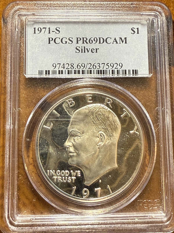 1971-S $1 Silver, DCAM PR69DCAM 认证号26375929, PCGS号97428