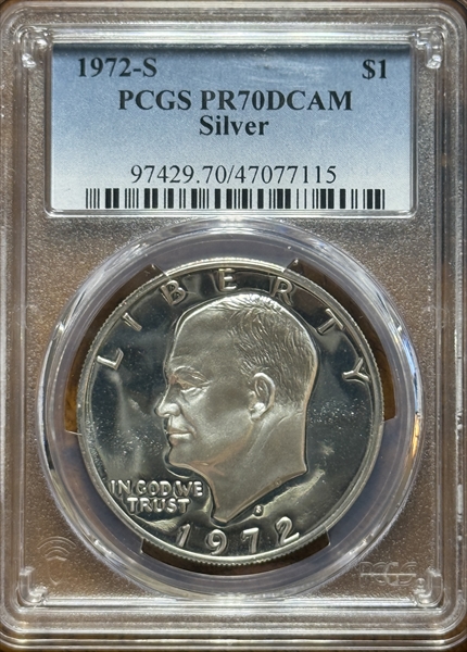 1972-S $1 Silver, DCAM PR70DCAM 认证号47077115, PCGS号97429
