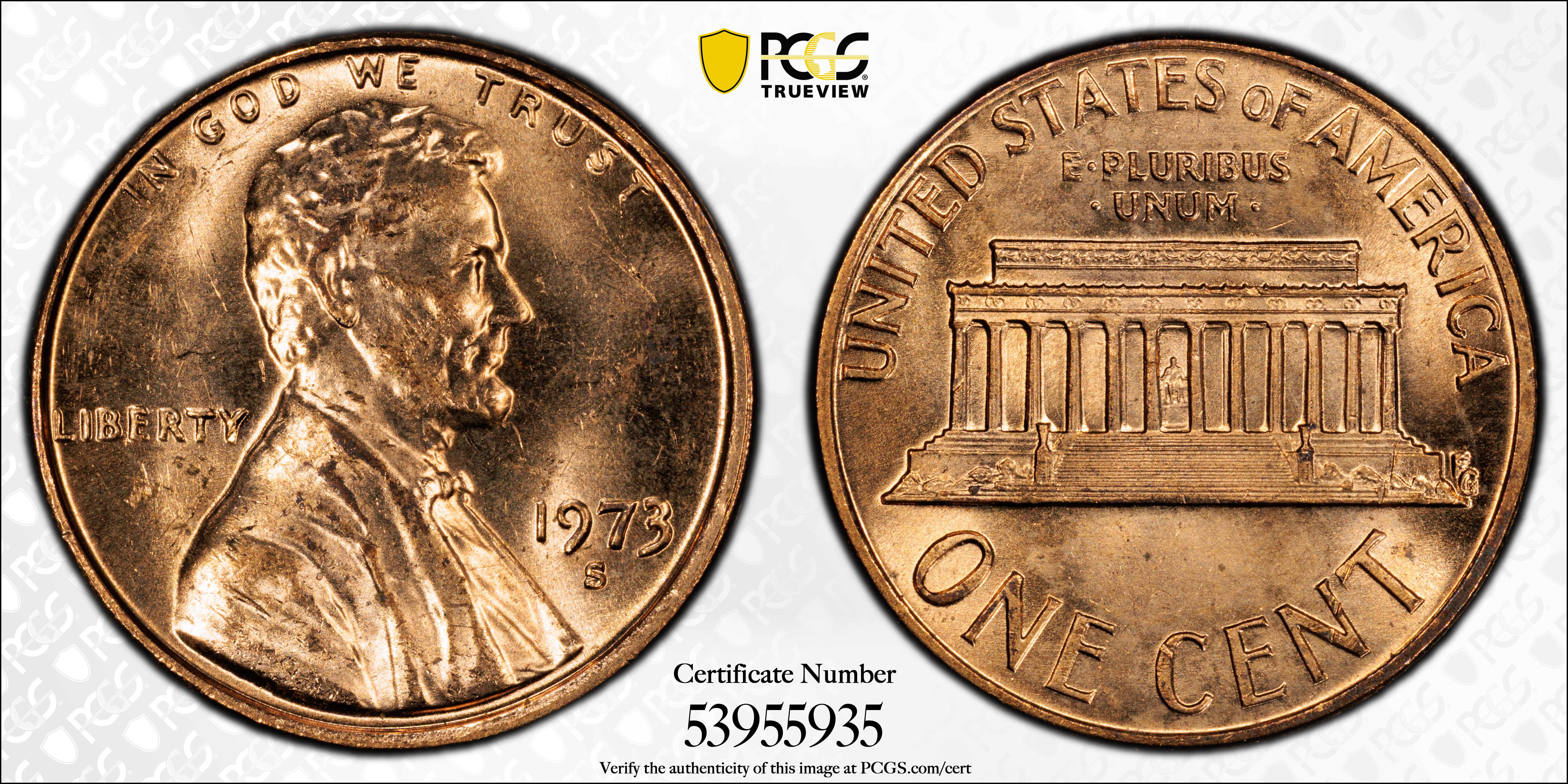 1973-S 1C, RD MS64RD 认证号53955935, PCGS号2968