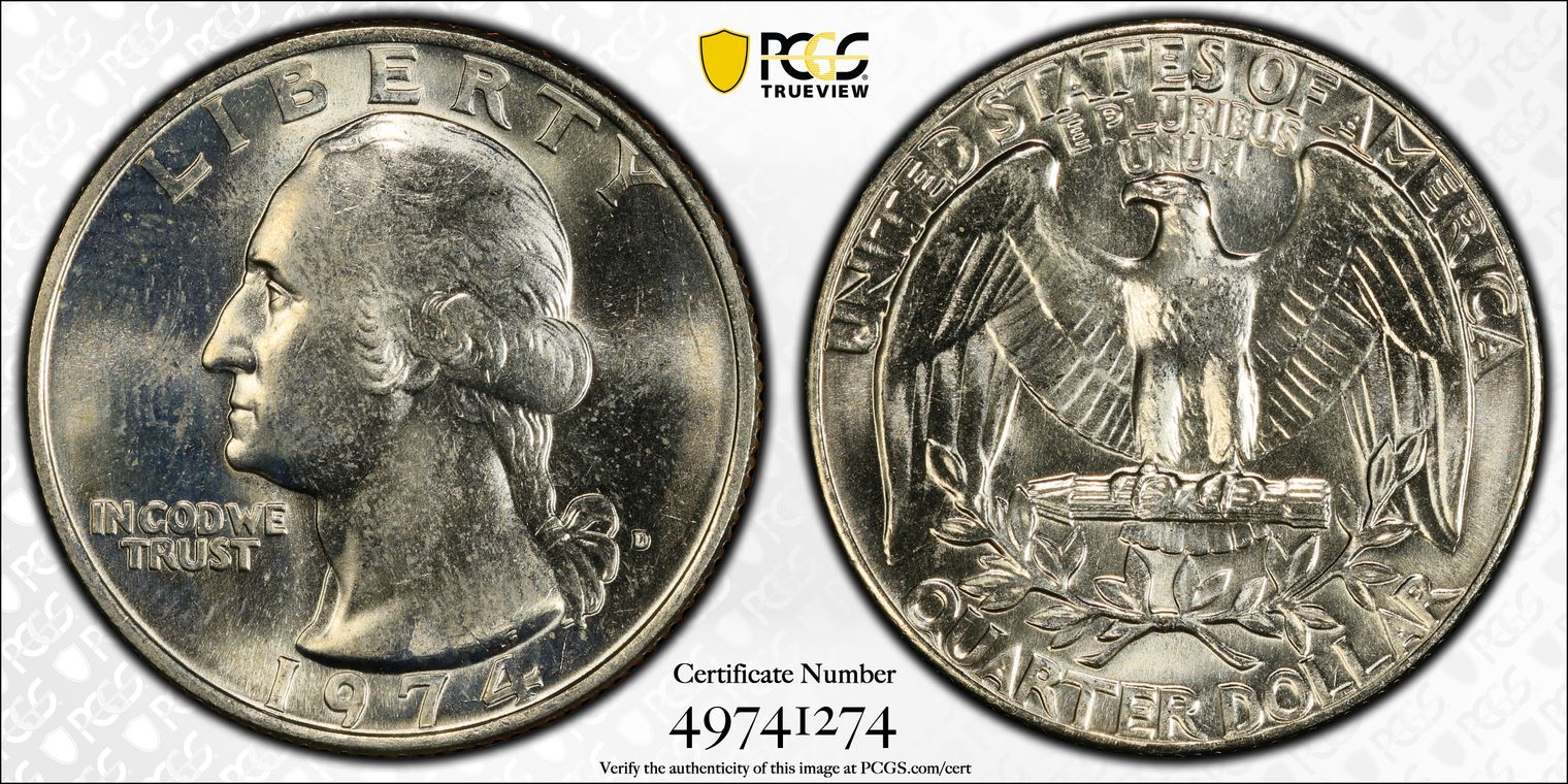 1974-D 25C MS65 认证号49741274, PCGS号5894