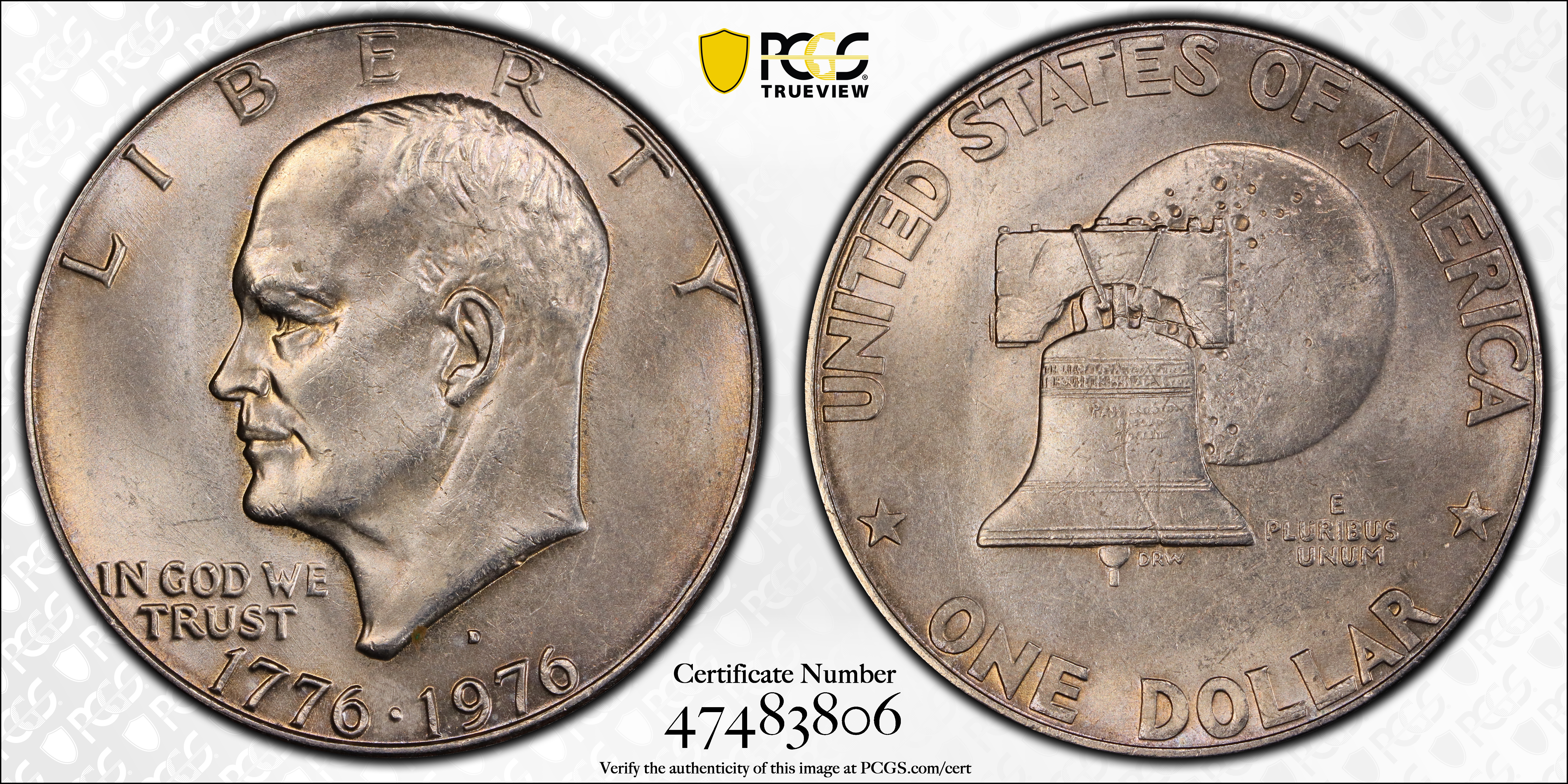 1976-D $1 Type 1 MS64 认证号47483806, PCGS号7420