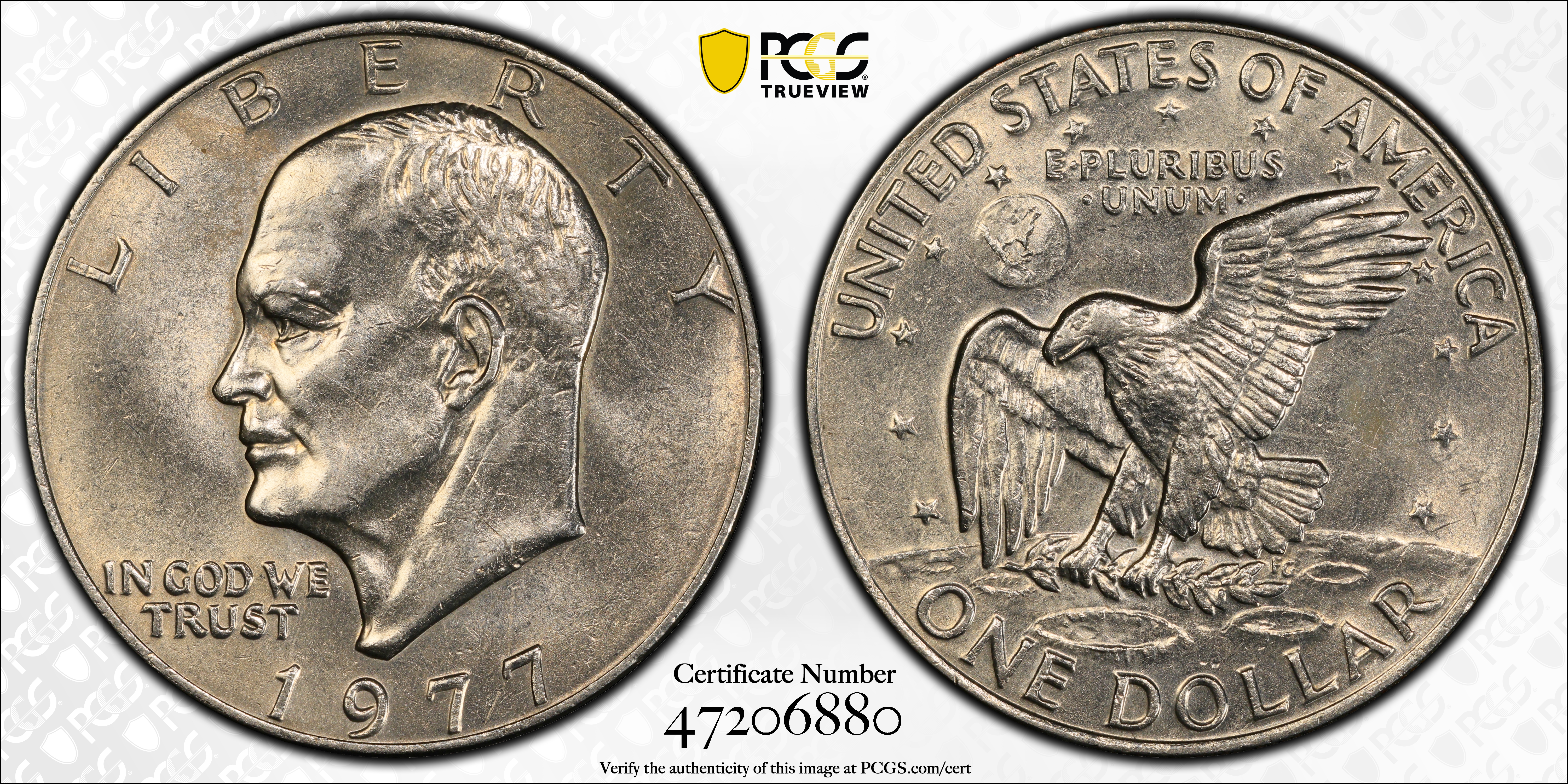 1977 $1 AU58 认证号47206880, PCGS号7423