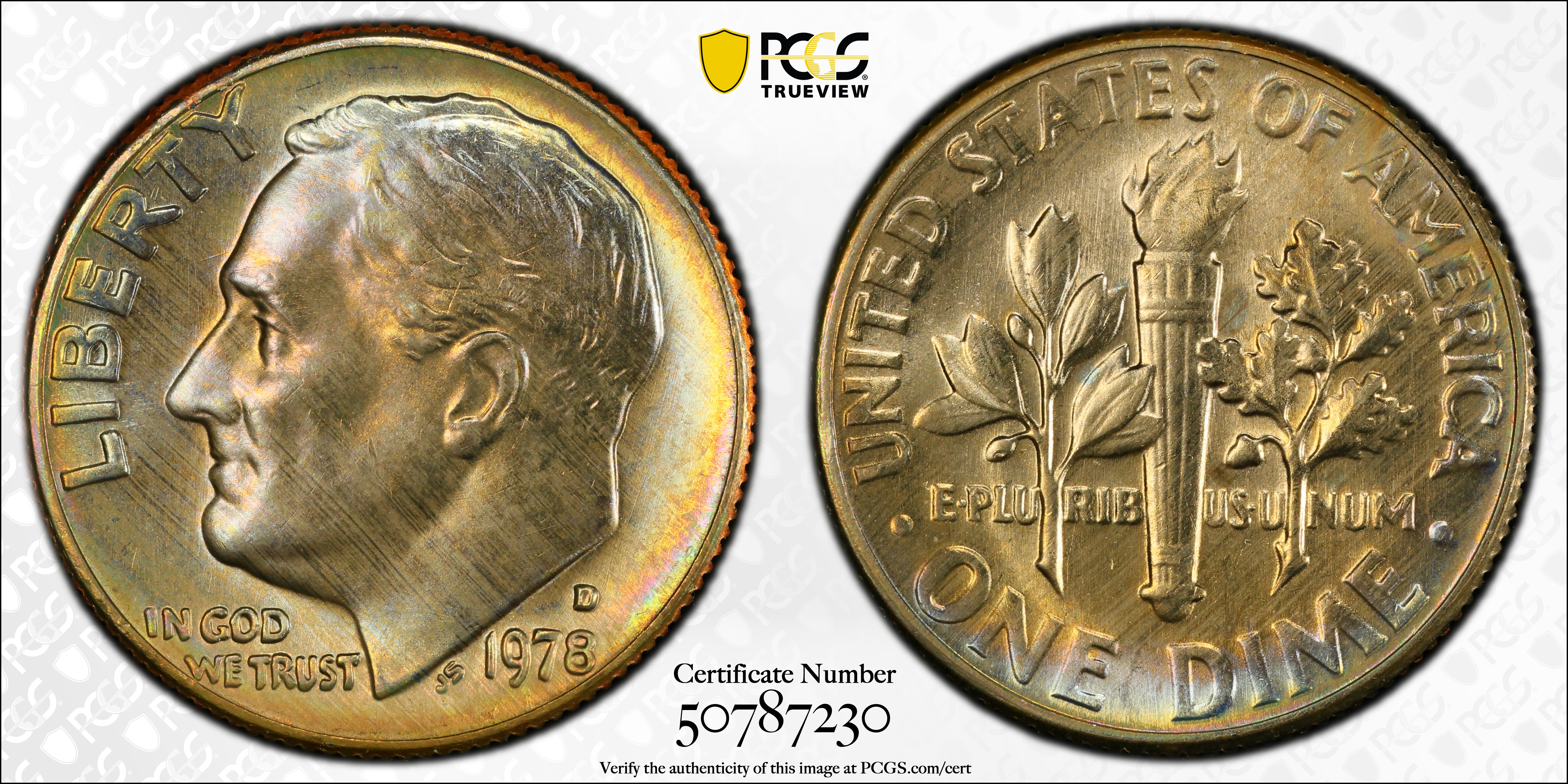 1978-D 10C MS67 认证号50787230, PCGS号5154