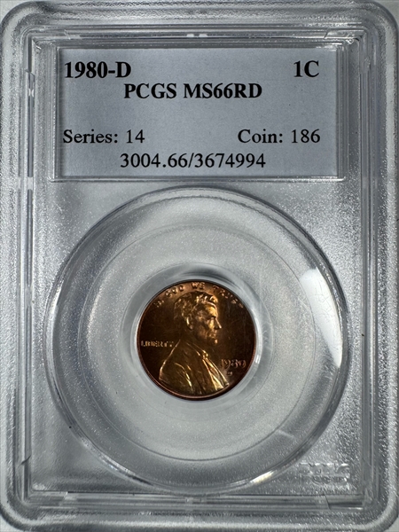 1980-D 1C, RD MS66RD 认证号03674994, PCGS号3004