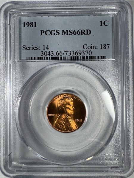 1981 1C, RD MS66RD 认证号73369370, PCGS号3043