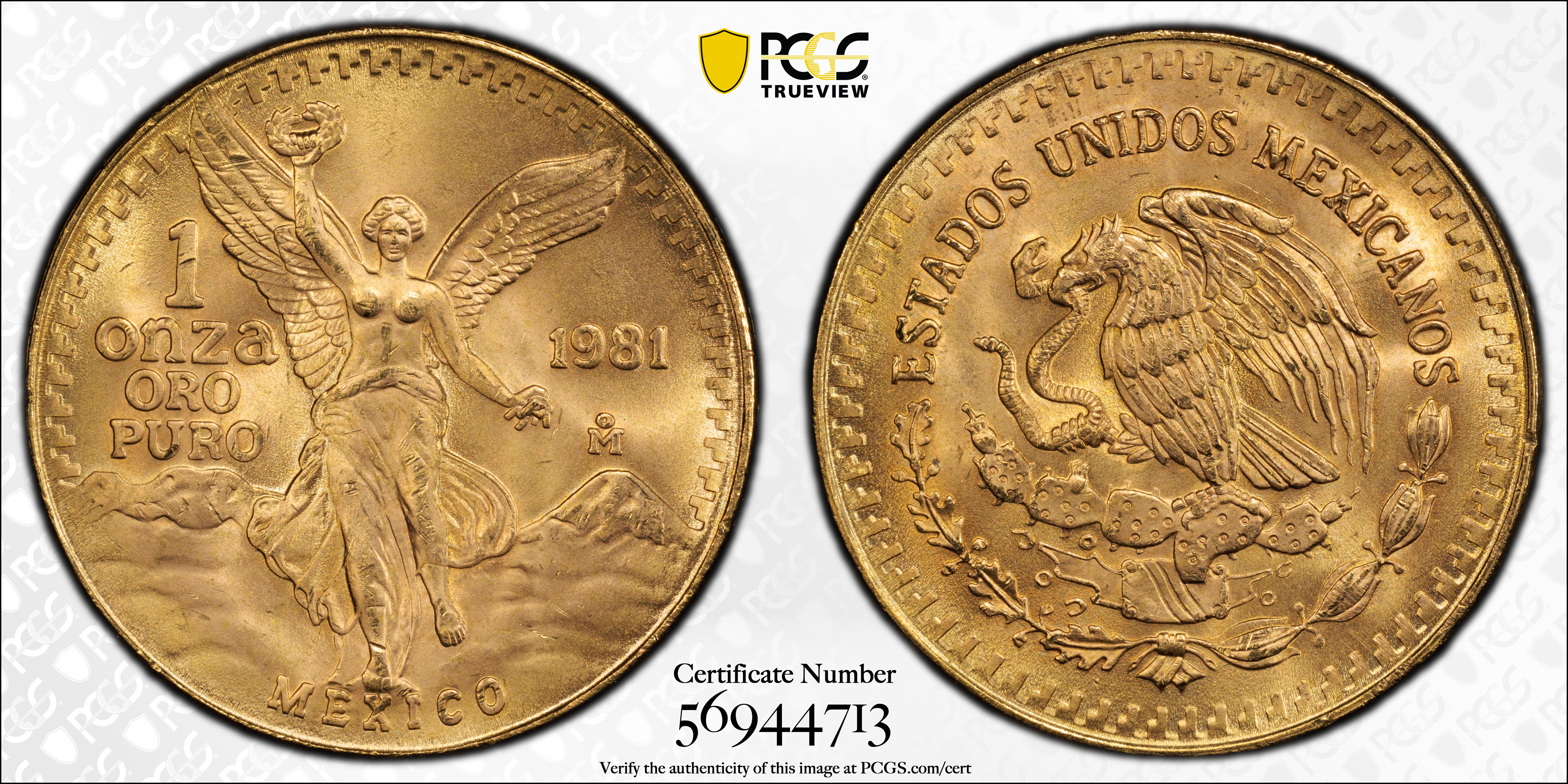 1981-Mo Onza Libertad Au MS66 认证号56944713, PCGS号526454