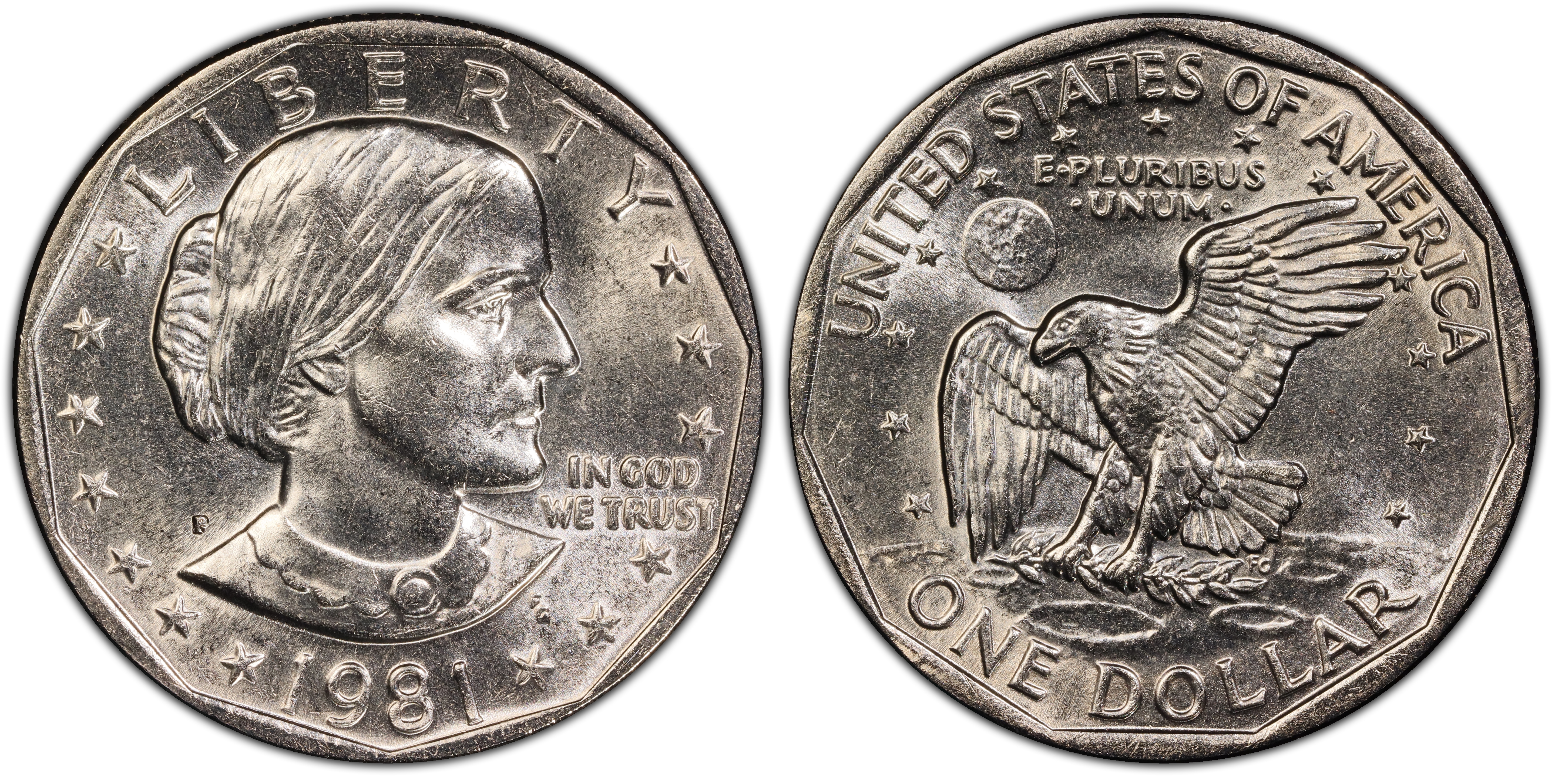 The circulation strike1981-P Susan B. Anthony Dollar is the key date in the whole Susan B. Anthony Dollar series. It is the lowest mintage in the circulation strike series and it is also the second most difficult date and mint mark to find in high uncirculated condition. Only the 1981-S is tougher in MS66 grades and higher.