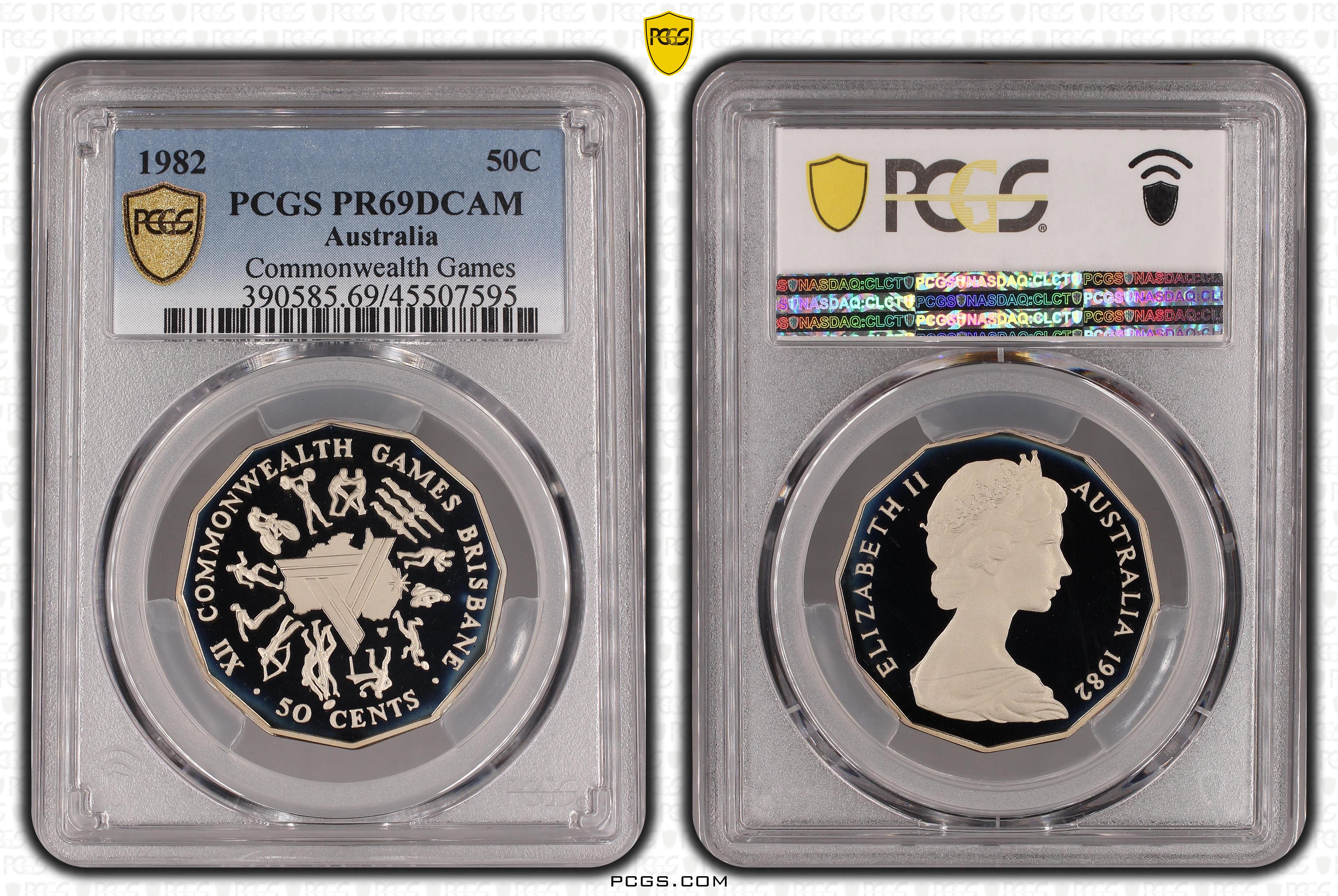 1982 50C Commonwealth Games, DCAM PR69DCAM 认证号45507595, PCGS号390585