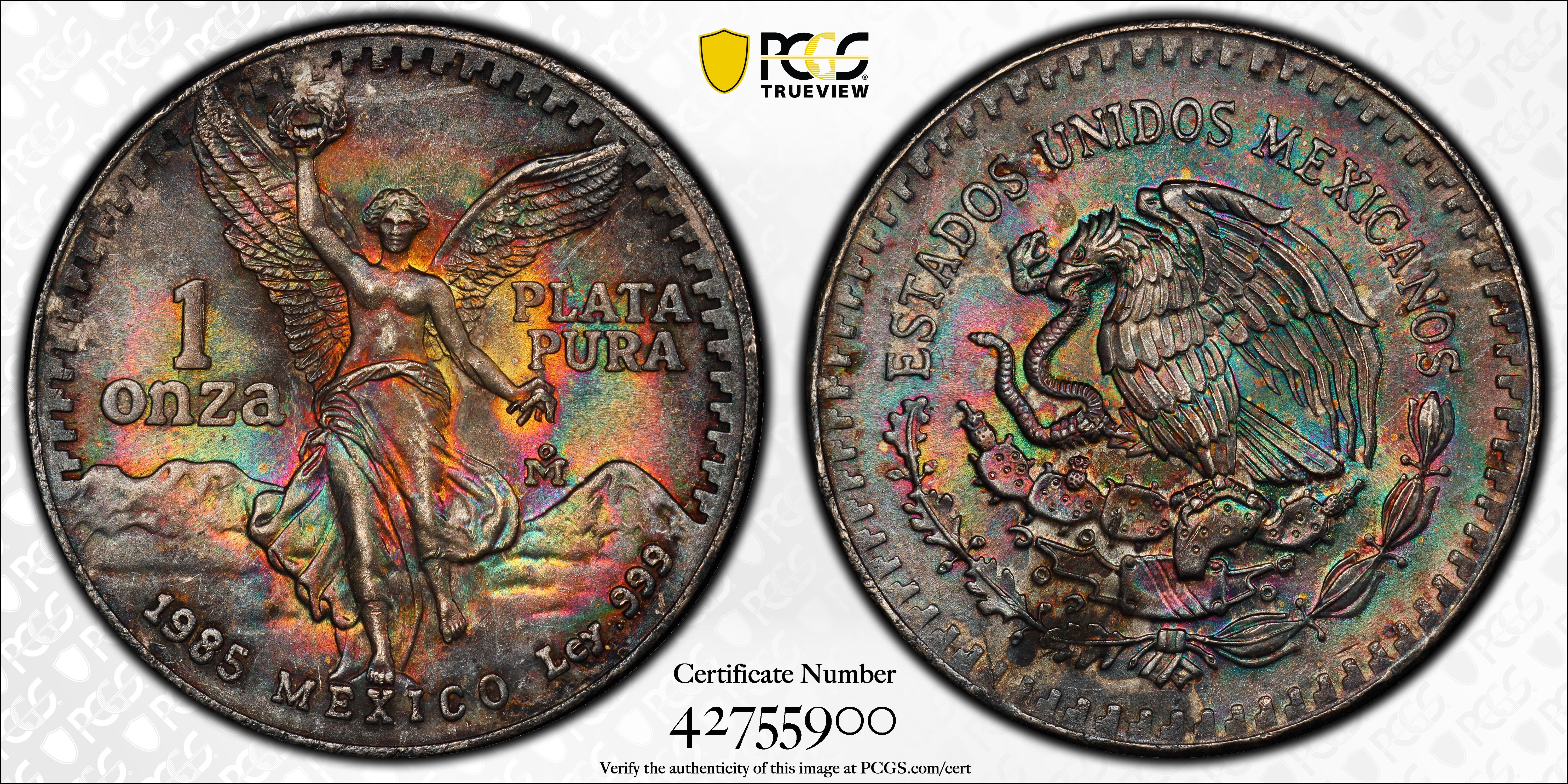1985-Mo Onza Libertad Ag MS66 认证号42755900, PCGS号526441
