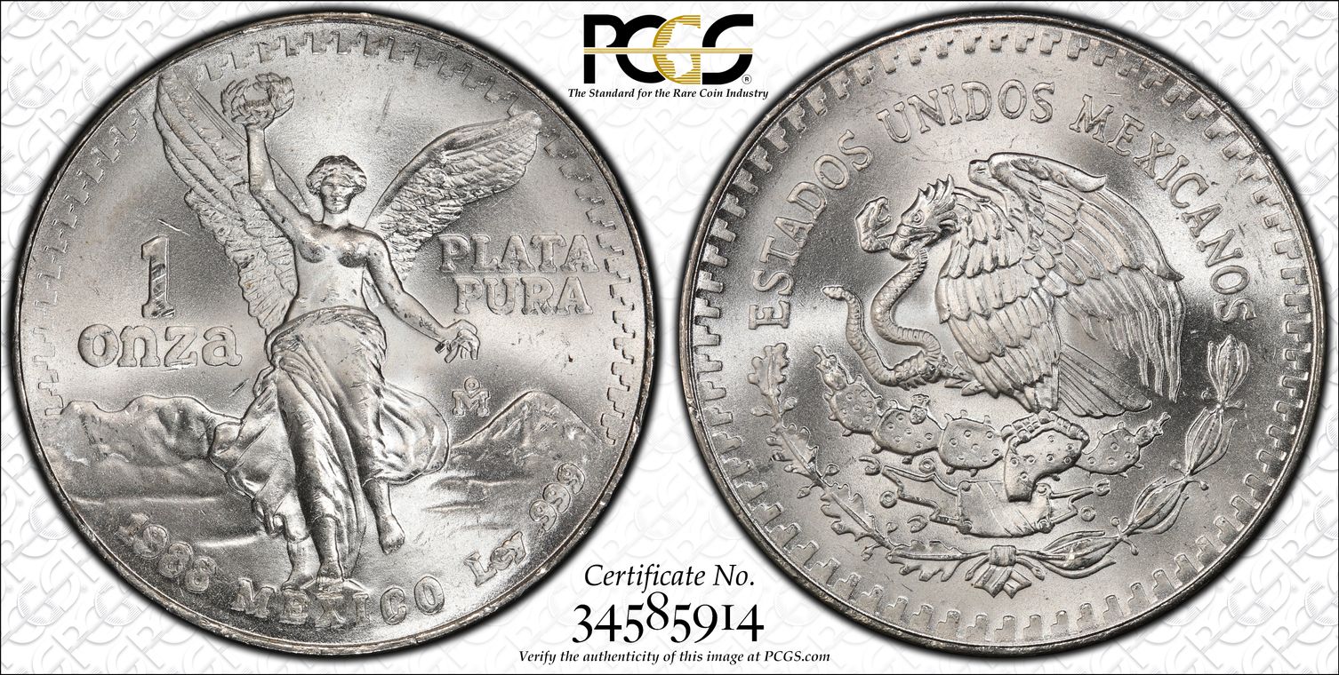 1988-Mo Onza Libertad Ag - DDO MS66 认证号34585914, PCGS号570645