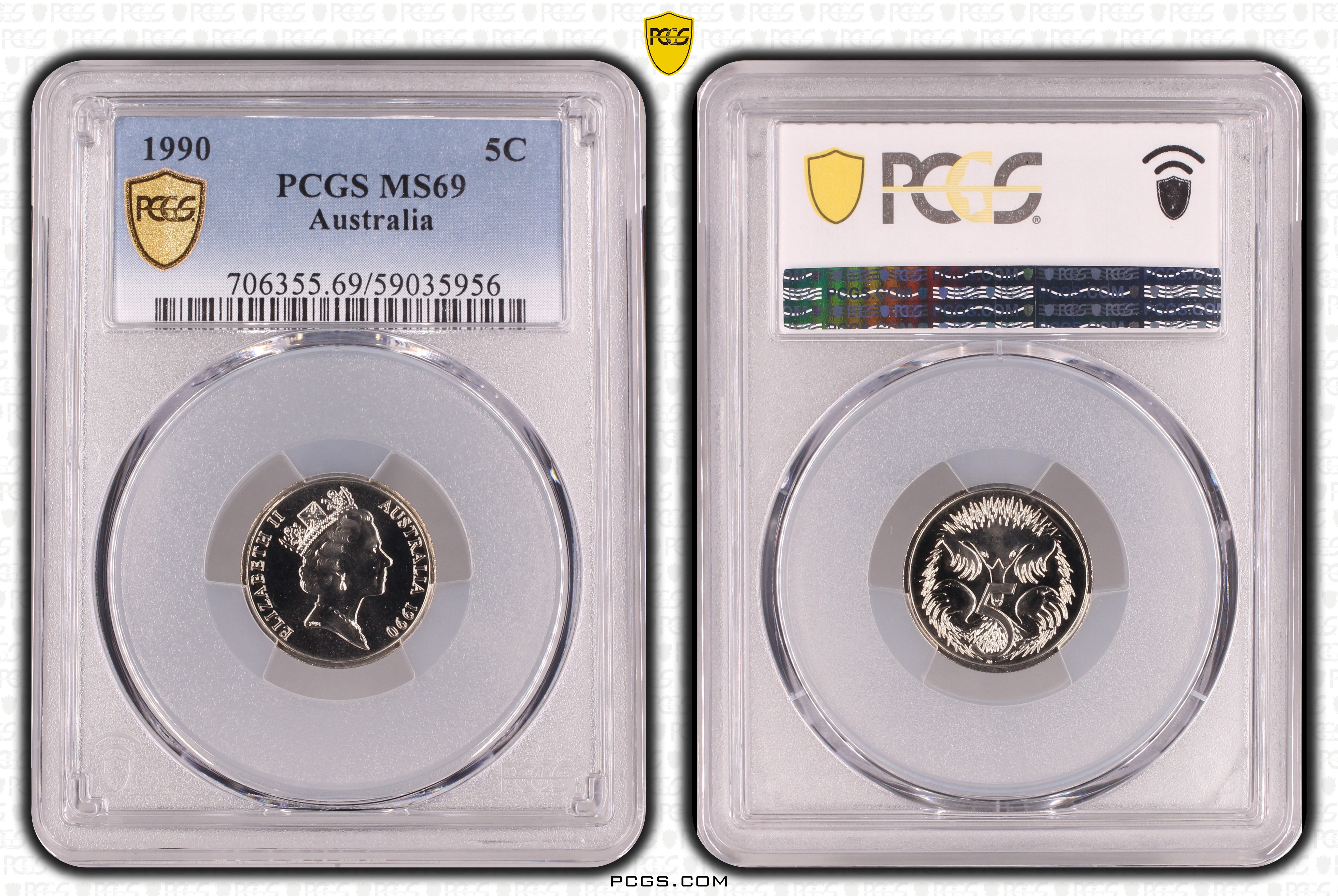 1990 5C MS69 认证号59035956, PCGS号706355