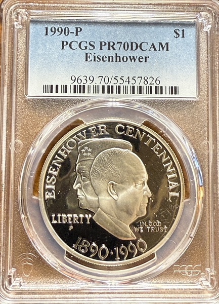 1990-P $1 Eisenhower, DCAM PR70DCAM 认证号55457826, PCGS号9639