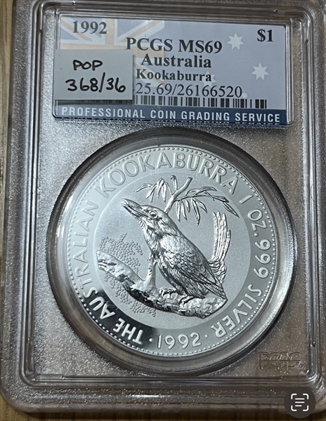 1992 $1 Kookaburra Ag MS69 认证号26166520, PCGS号114425