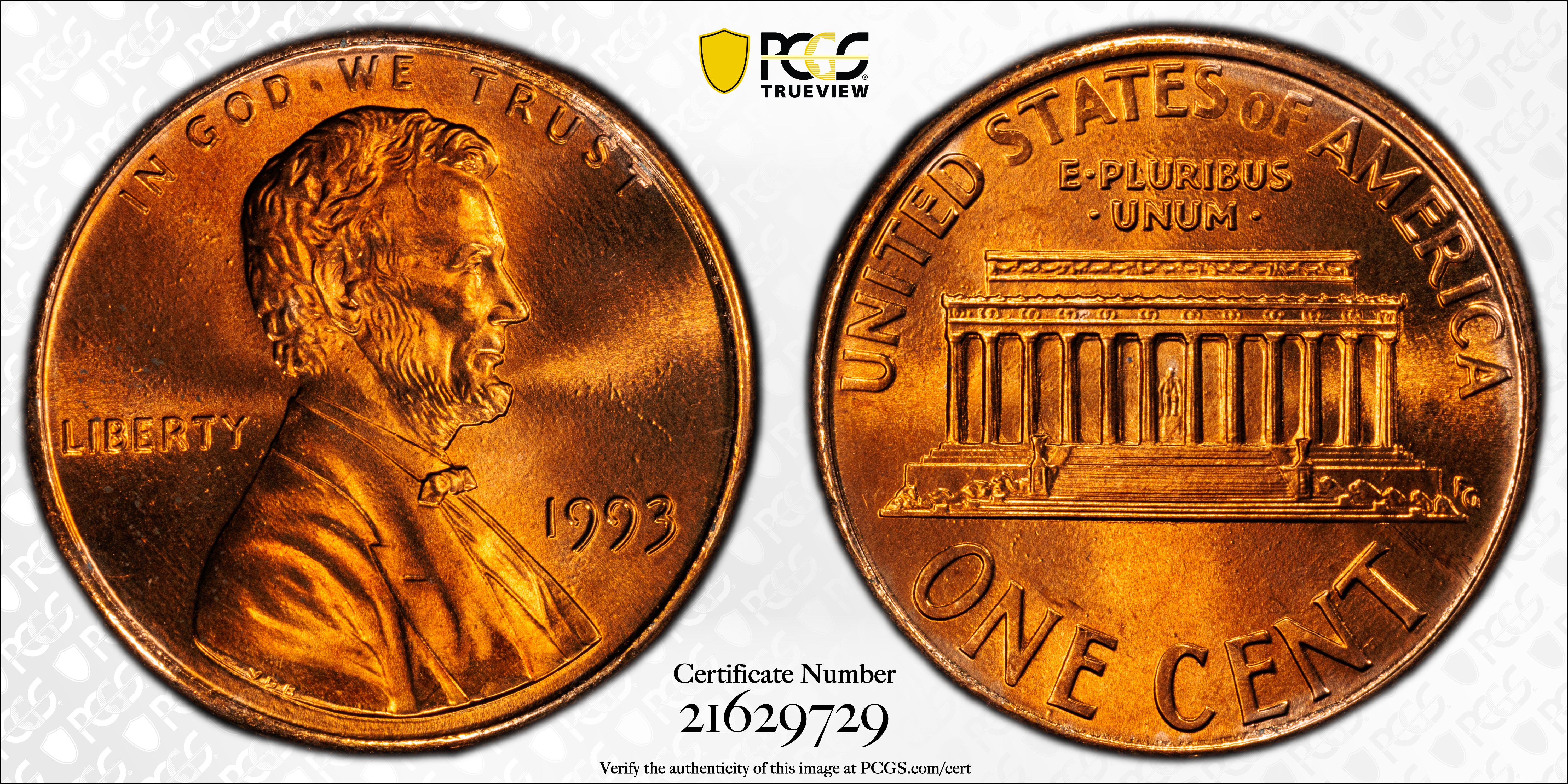 1993 1C, RD MS68RD 认证号21629729, PCGS号3107