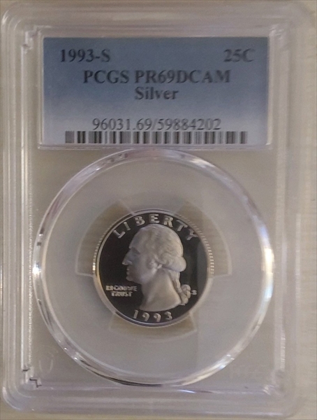 1993-S 25C Silver, DCAM PR69DCAM 认证号59884202, PCGS号96031