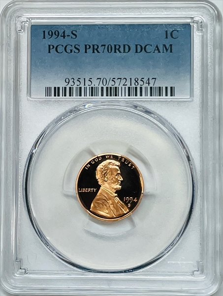1994-S 1C, DCAM PR70DCAM 认证号57218547, PCGS号93515