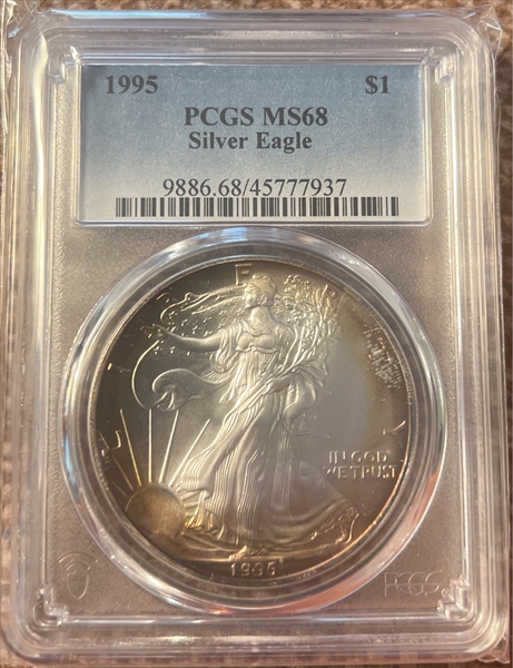 1995 $1 Silver Eagle MS68 认证号45777937, PCGS号9886