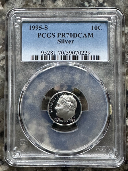 1995-S 10C Silver, DCAM PR70DCAM 认证号59070229, PCGS号95281