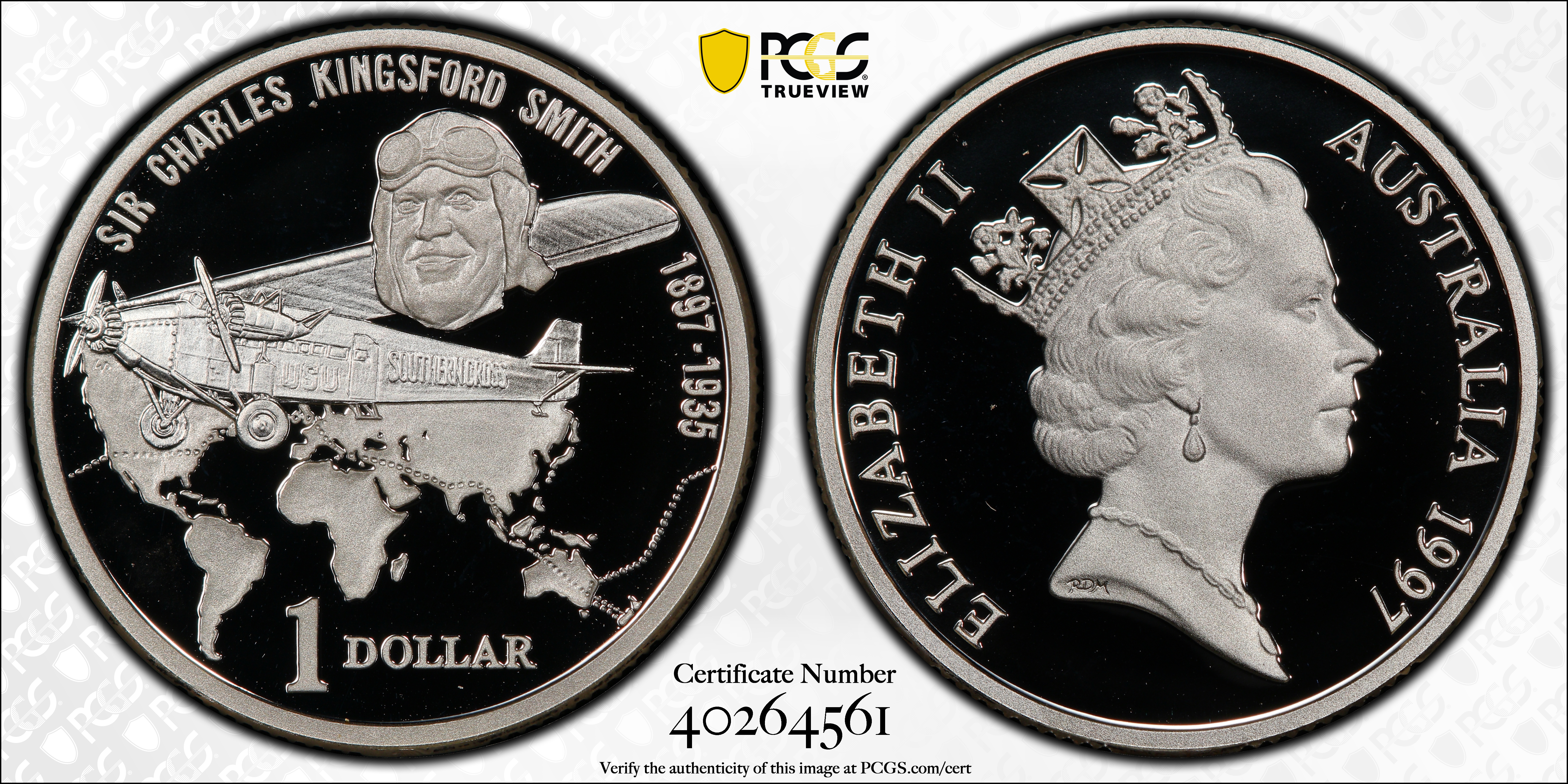 1997 $1 Kingsford Smith Sm Head Ag, DCAM PR70DCAM 认证号40264561, PCGS号731554
