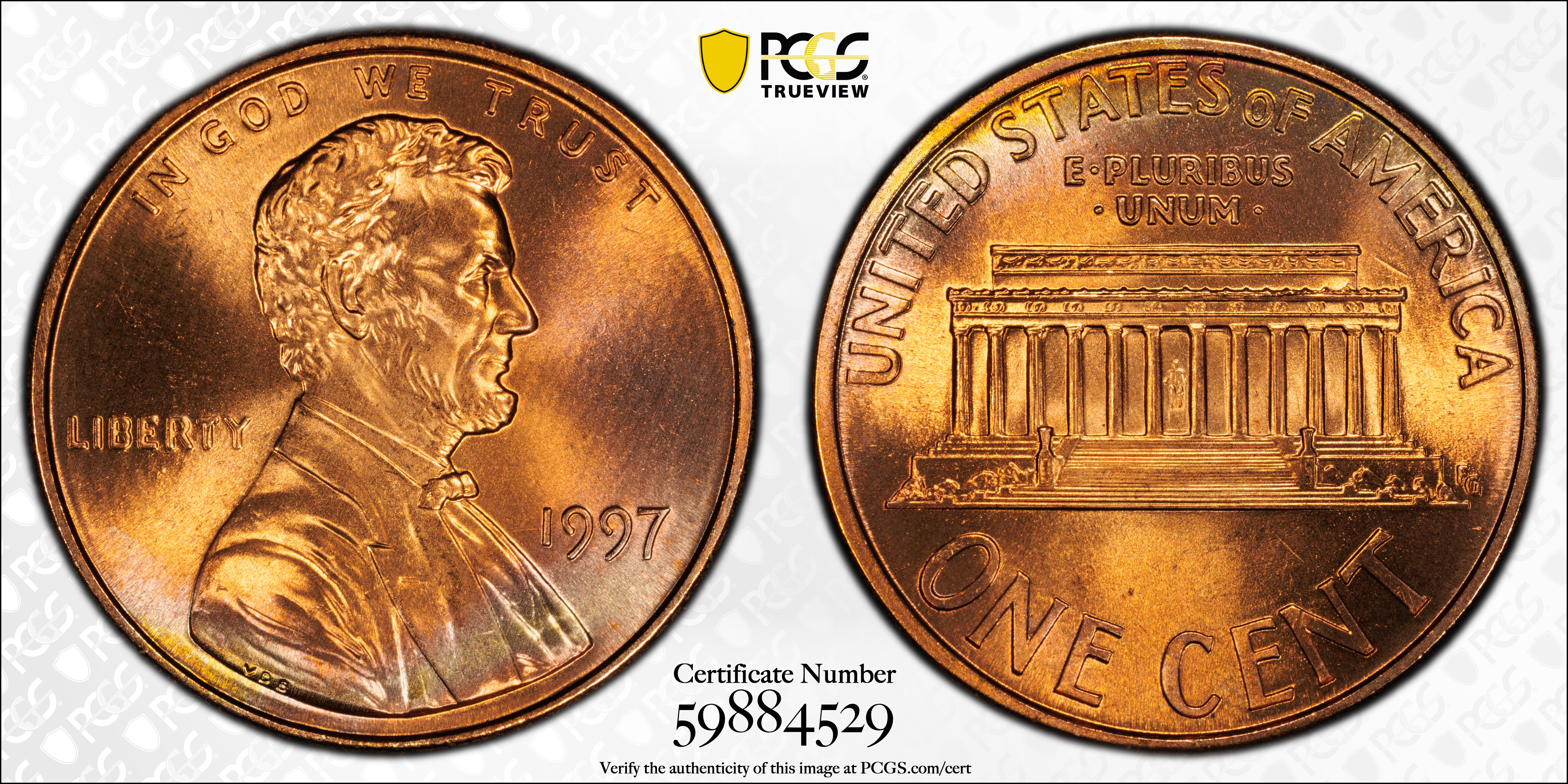 1997 1C, RD MS67+ RD 认证号59884529, PCGS号3145