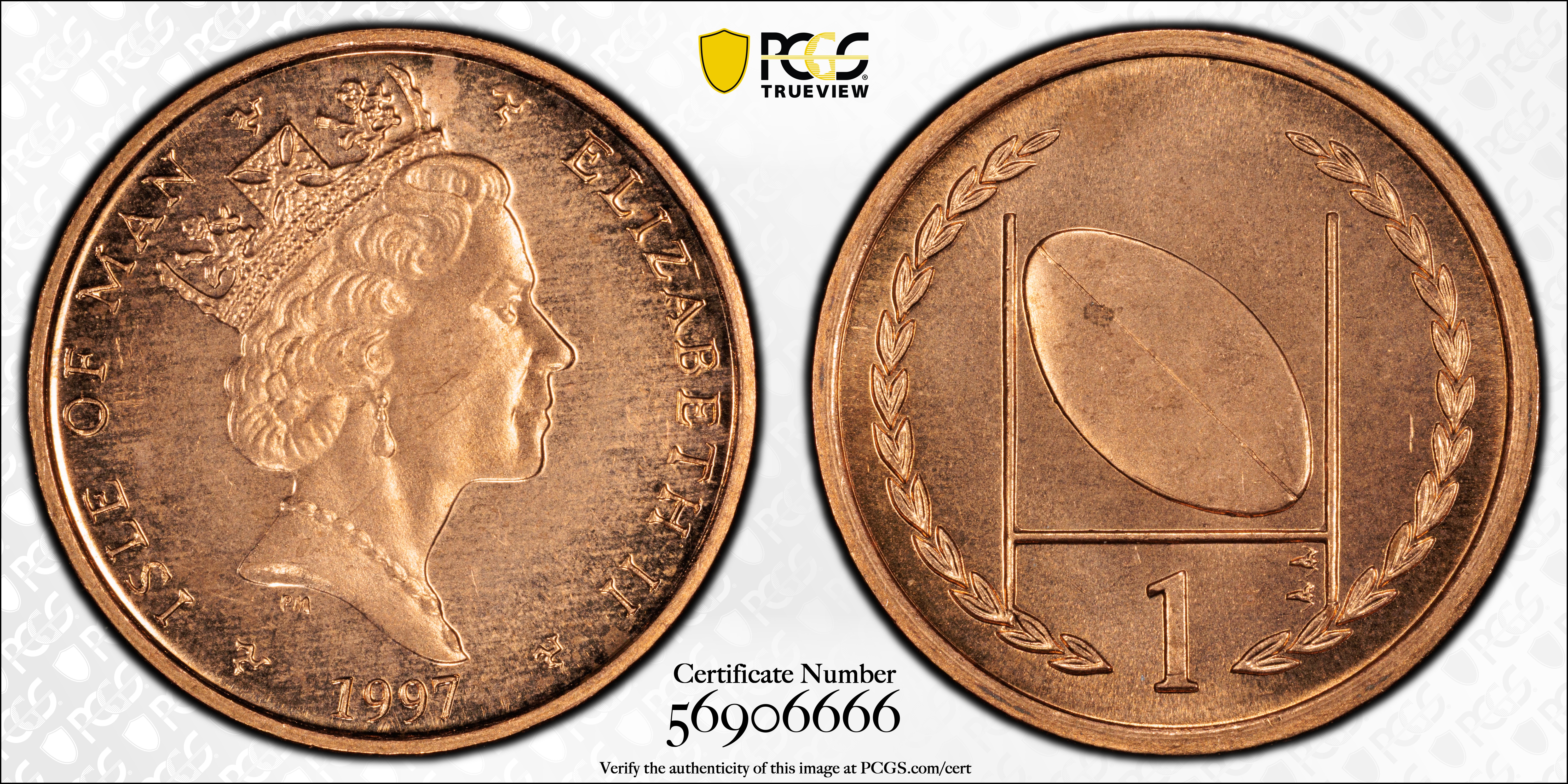 1997-PM 1D Rugby, RD MS64RD 认证号56906666, PCGS号233986