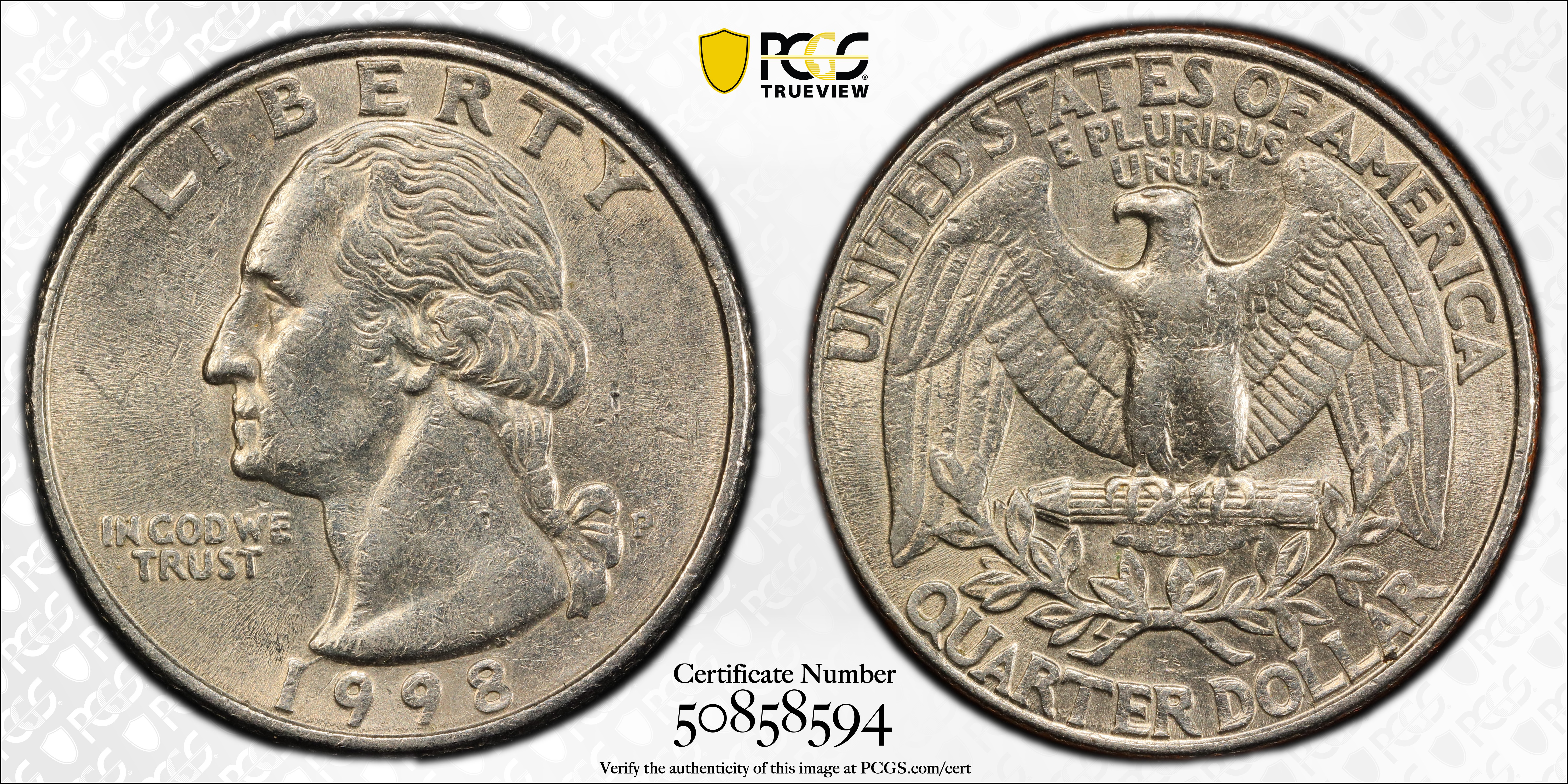 1998-P 25C AU58 认证号50858594, PCGS号5942