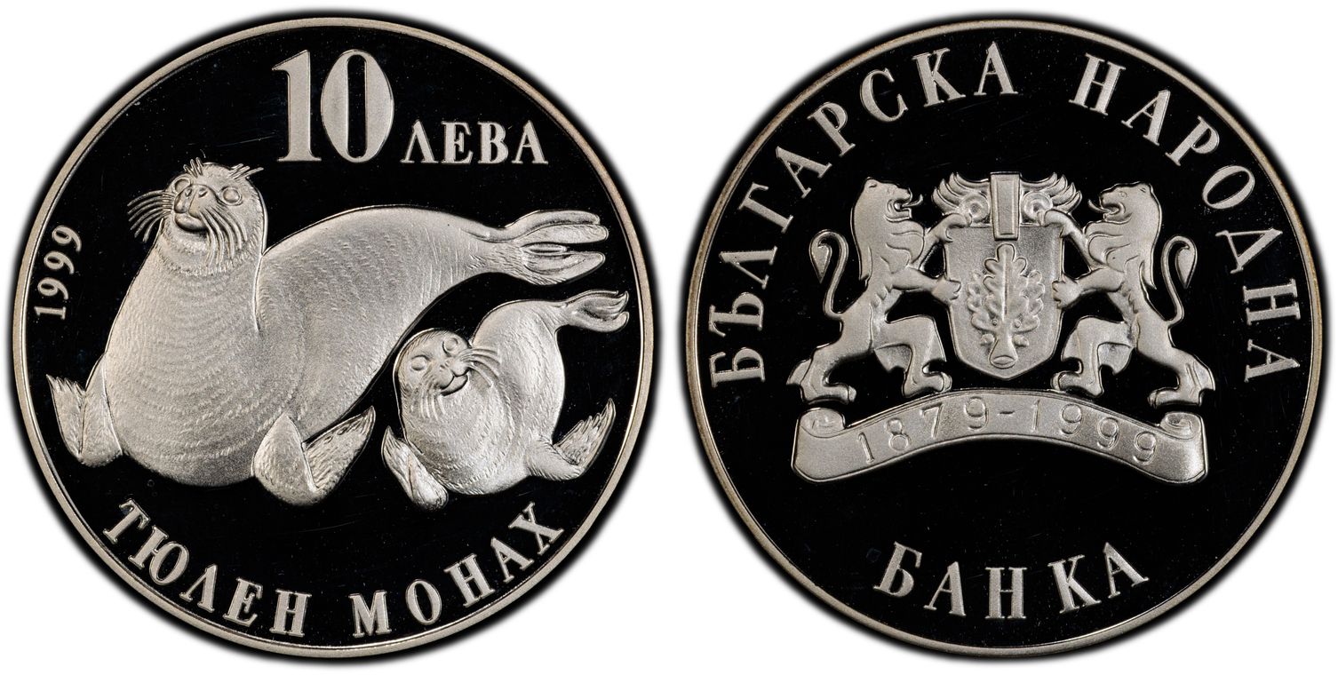 1999 10 Leva Monk Seal KM-245 Ag, DCAM PR67DCAM 认证号52750193, PCGS号381605