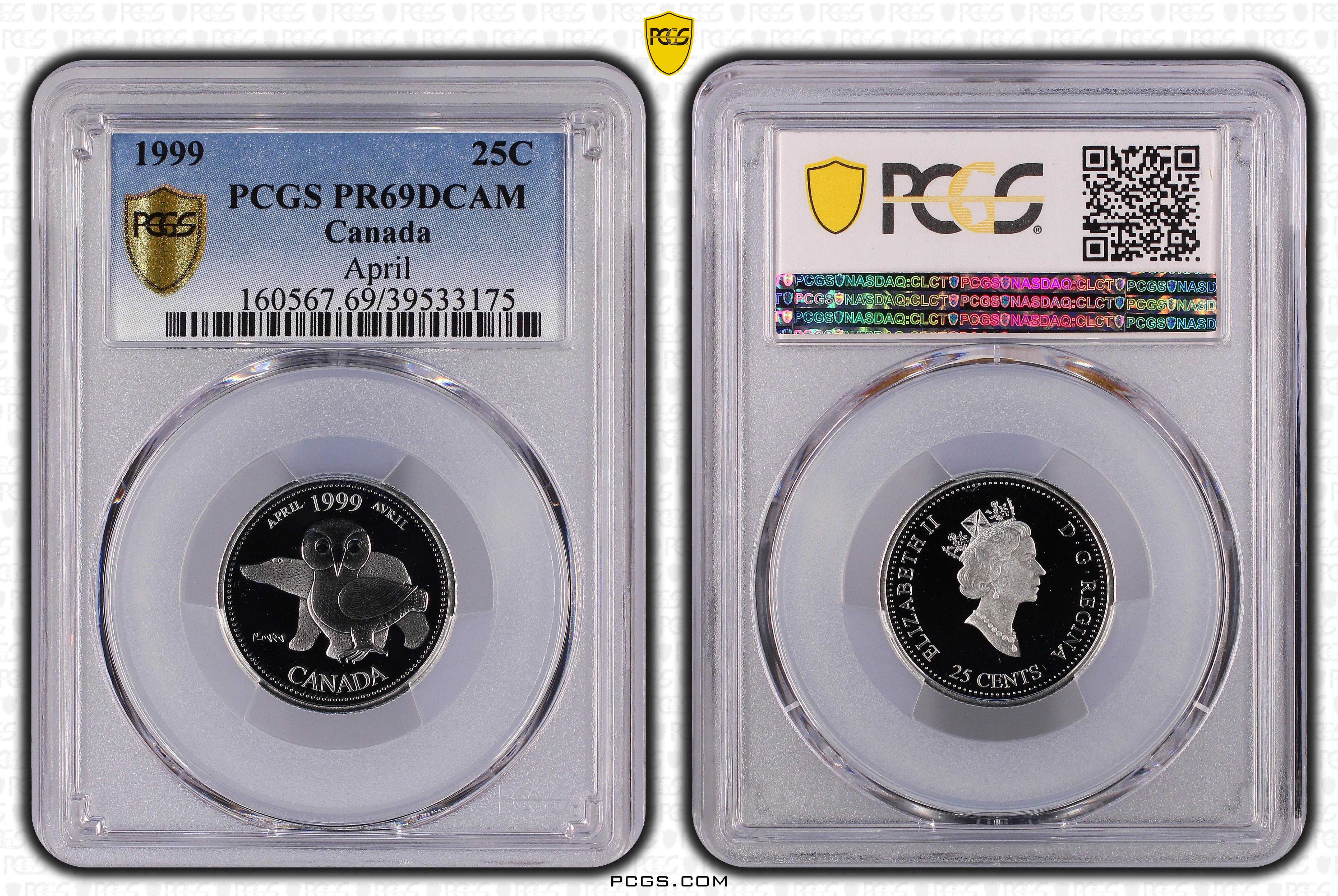 1999 25C April, DCAM PR69DCAM 认证号39533175, PCGS号160567