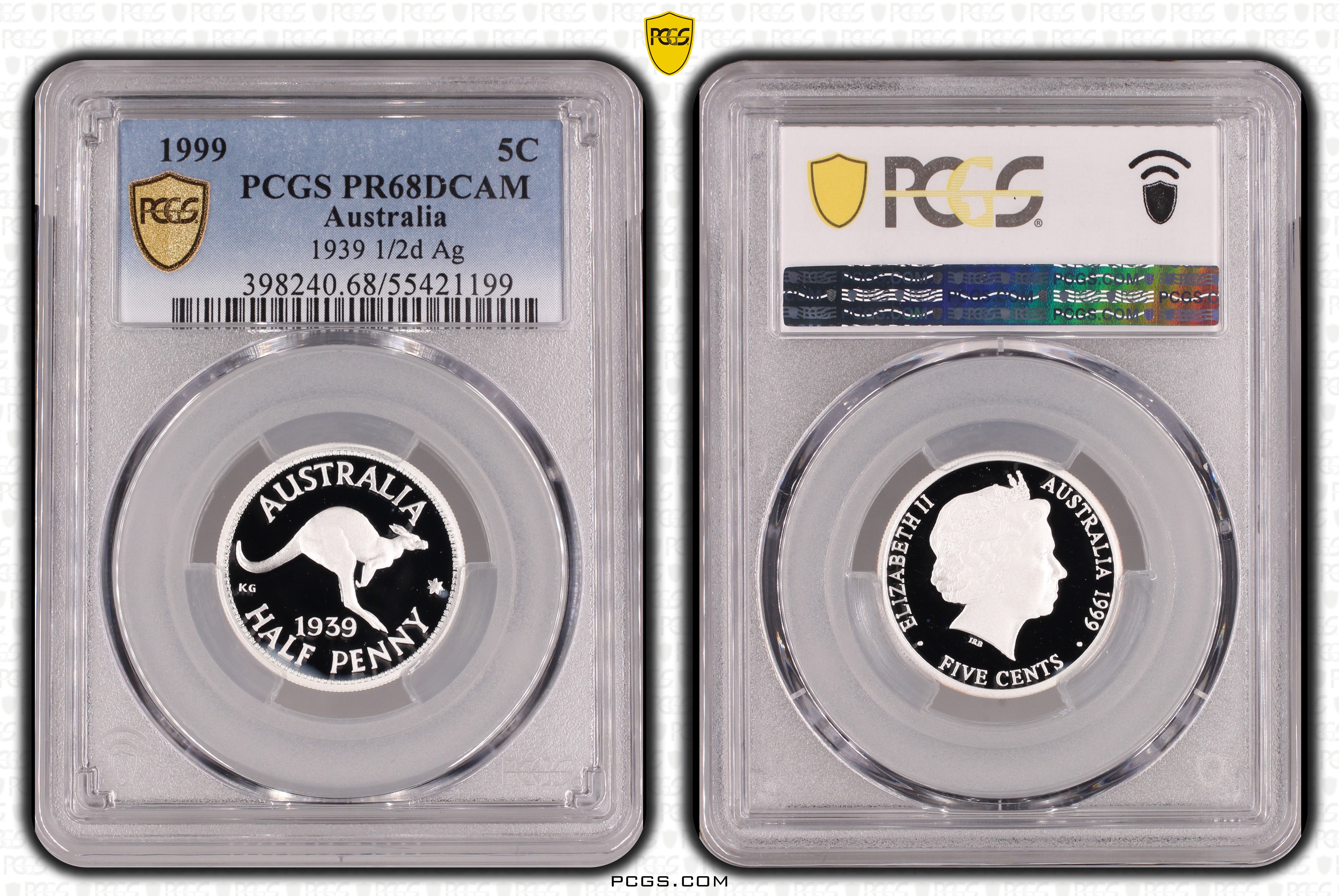 1999 5C 1939 1/2d Ag, DCAM PR68DCAM 认证号55421199, PCGS号398240