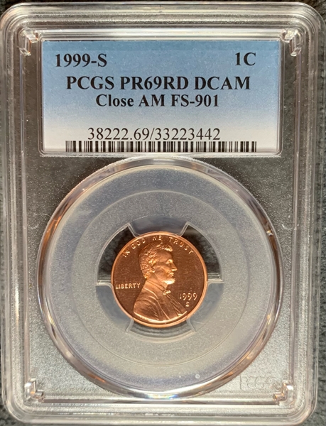 1999-S 1C Close AM FS-901, DCAM PR69DCAM 认证号33223442, PCGS号38222