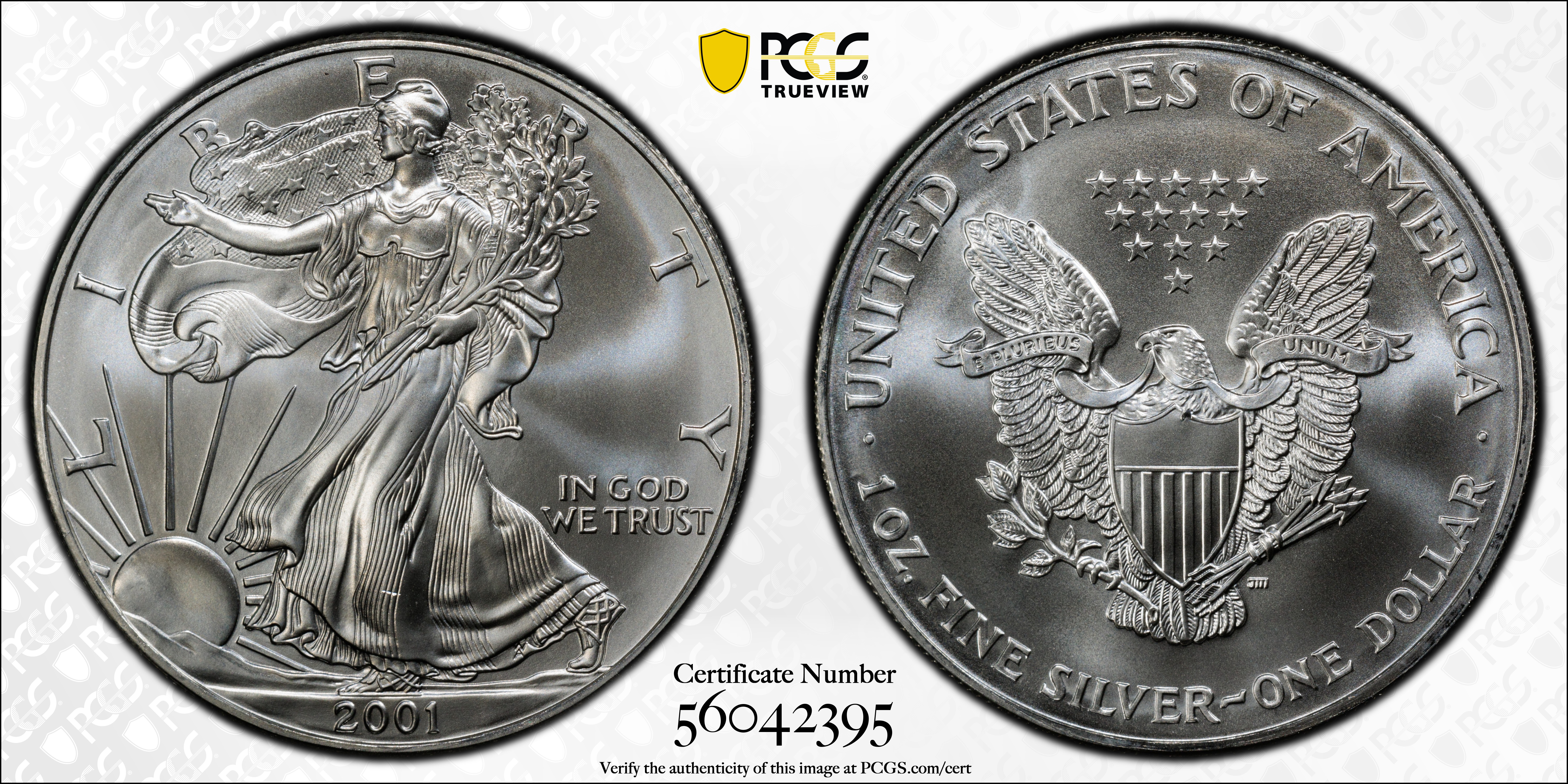 2001 $1 Silver Eagle MS69 认证号56042395, PCGS号9954