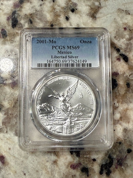 2001-Mo Onza Libertad Ag MS69 认证号37624149, PCGS号164750