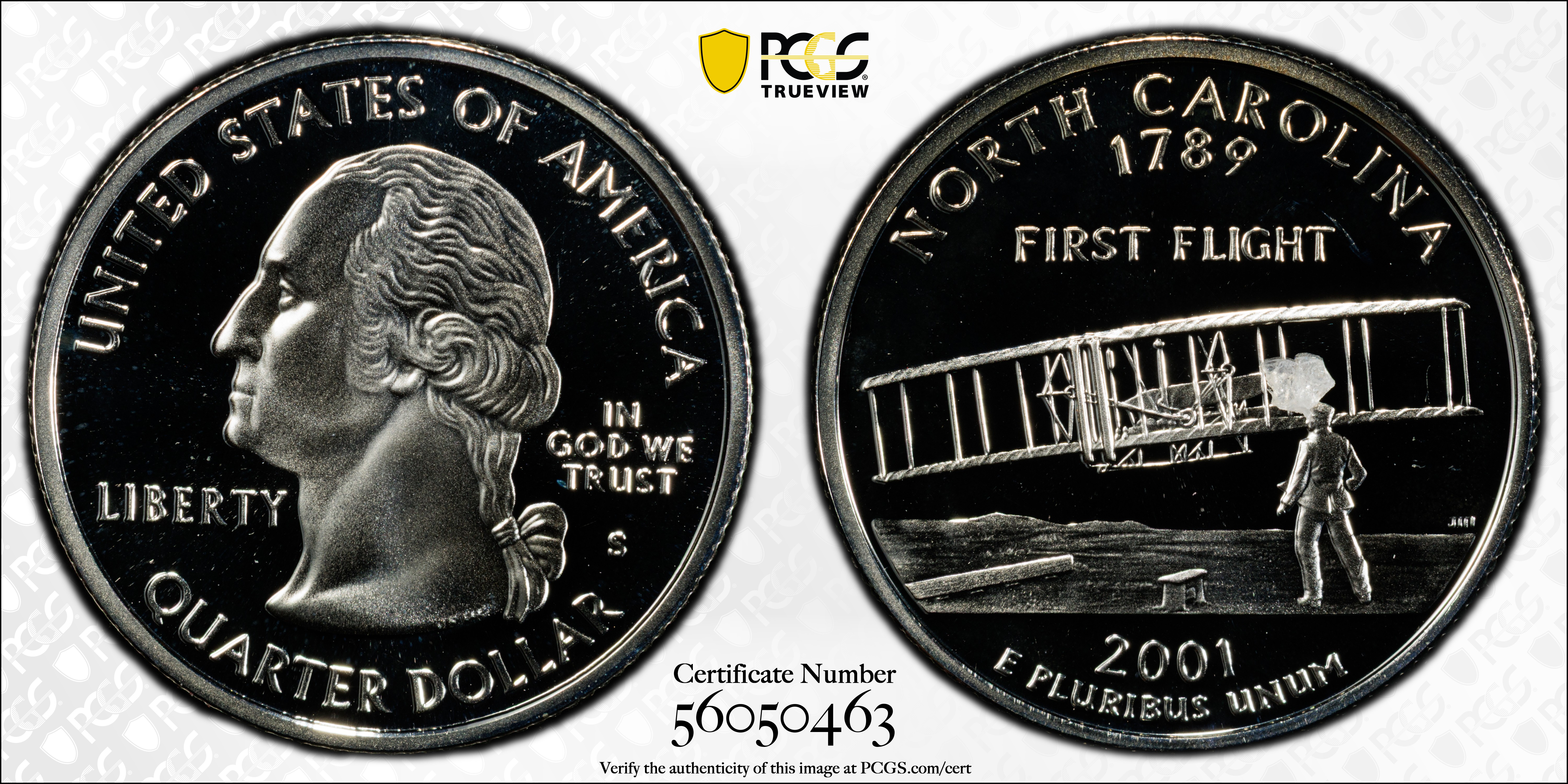 2001-S 25C North Carolina Silver, DCAM PR69DCAM 认证号56050463, PCGS号913020