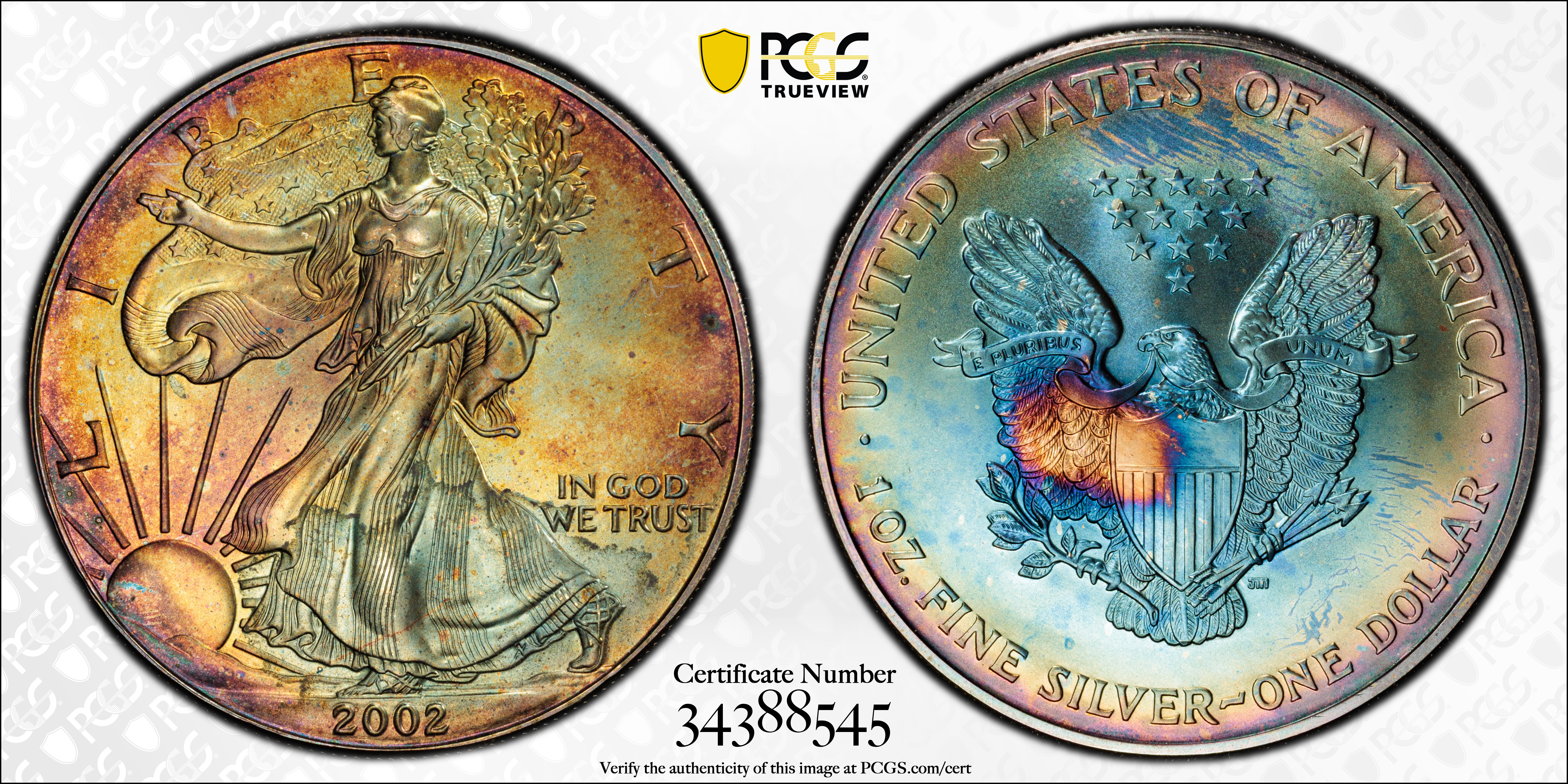 2002 $1 Silver Eagle MS68 认证号34388545, PCGS号9959