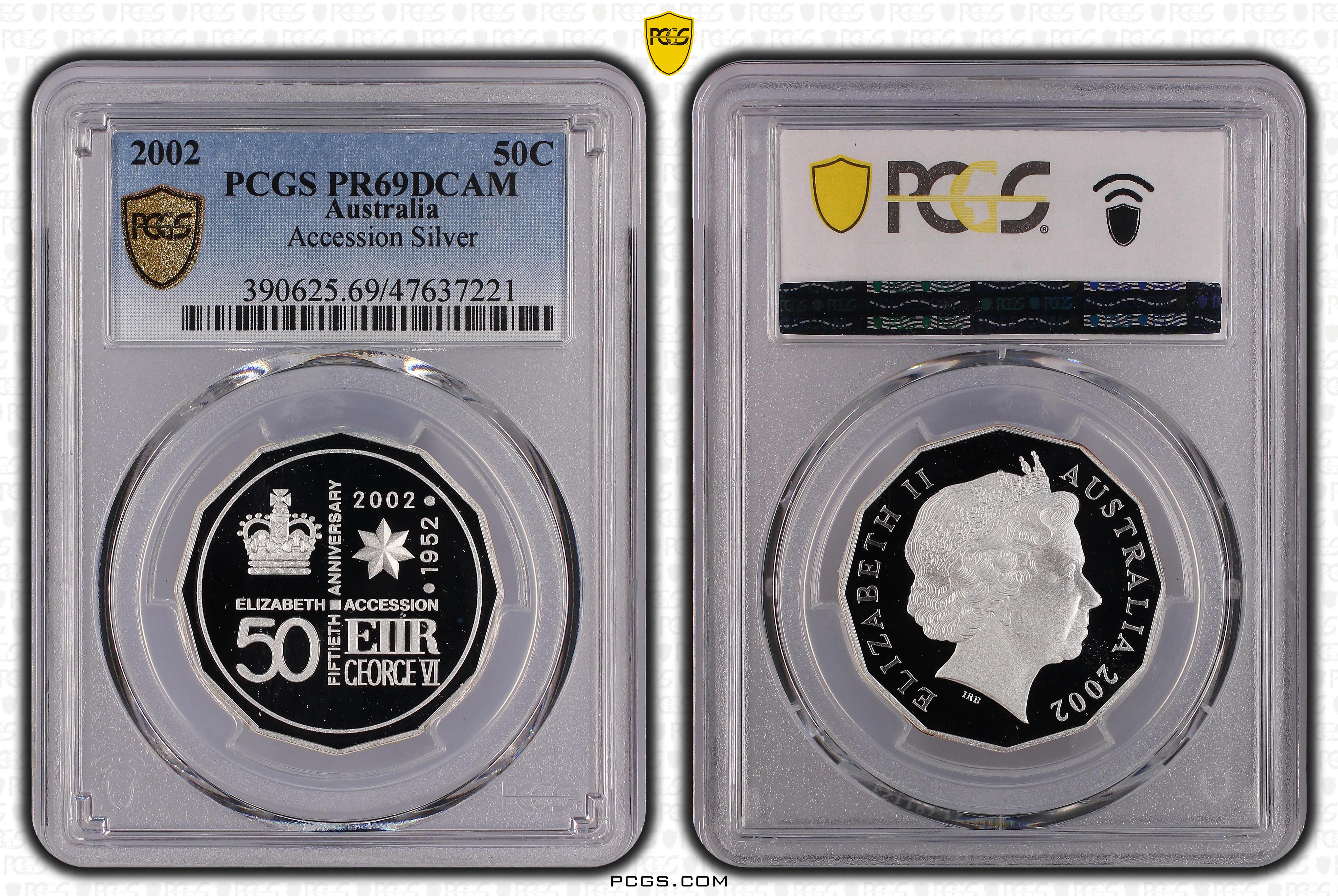 2002 50C Accession Silver, DCAM PR69DCAM 认证号47637221, PCGS号390625