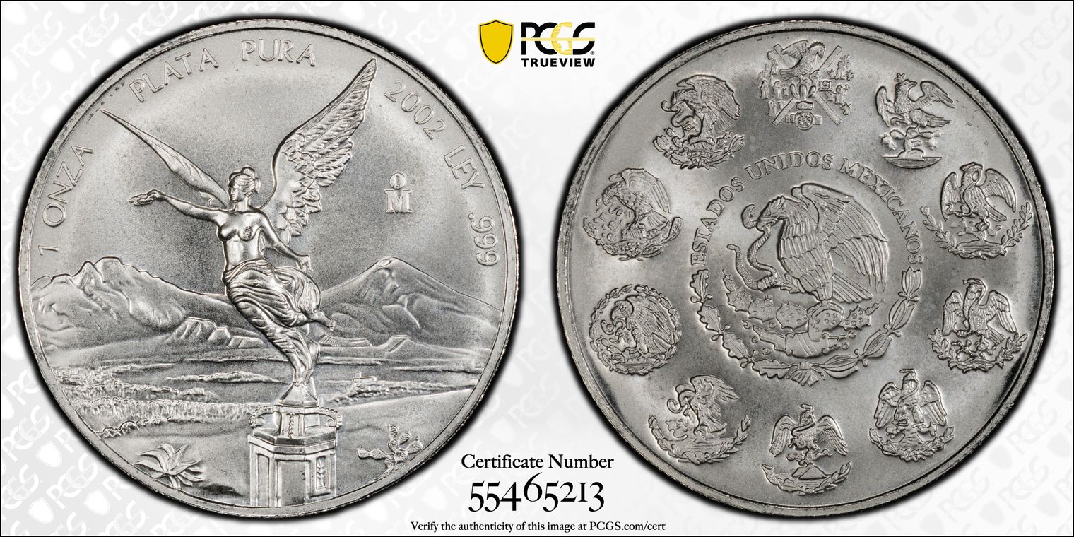 2002-Mo Onza Libertad Ag MS69 认证号55465213, PCGS号173653