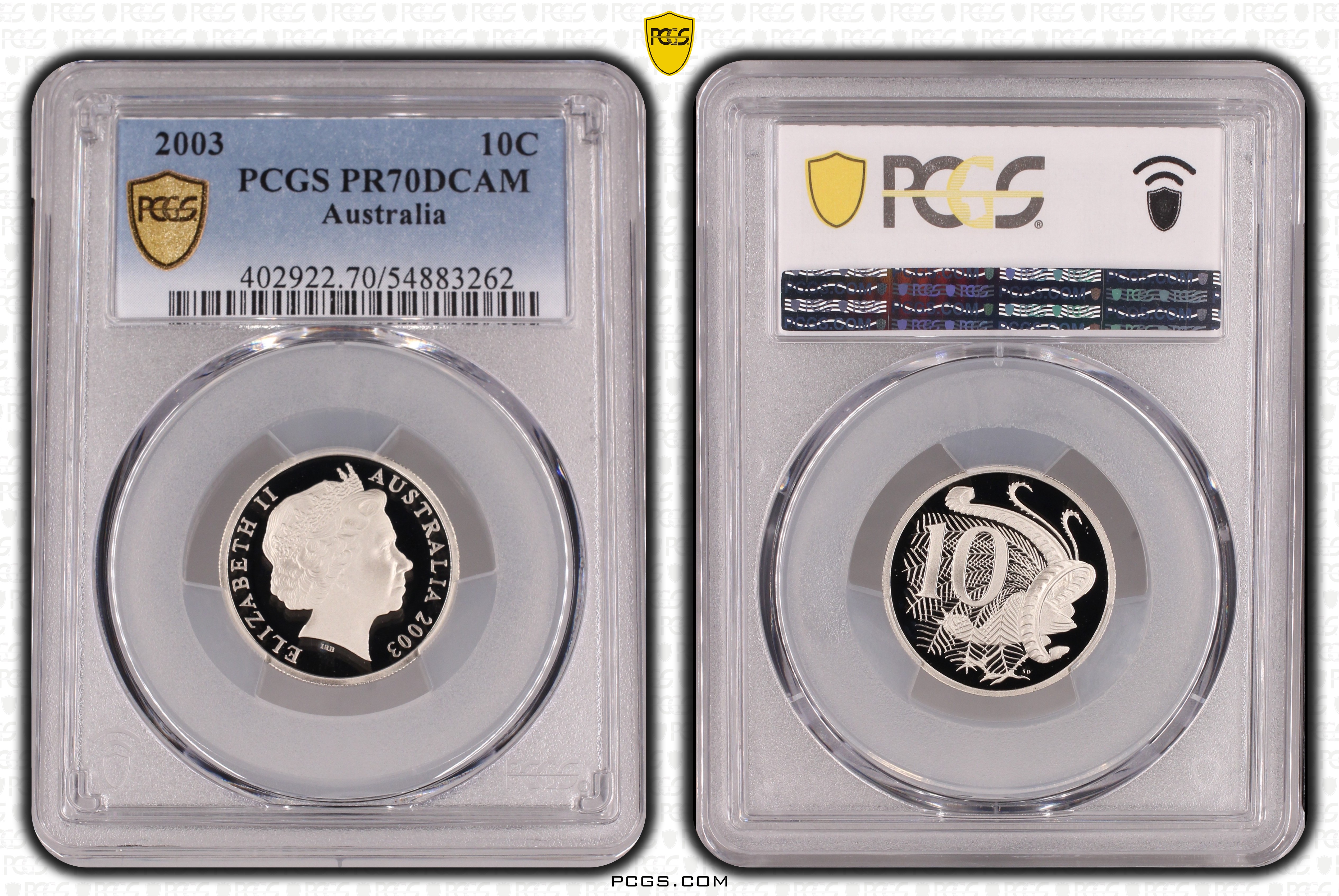 2003 10C, DCAM PR70DCAM 认证号54883262, PCGS号402922