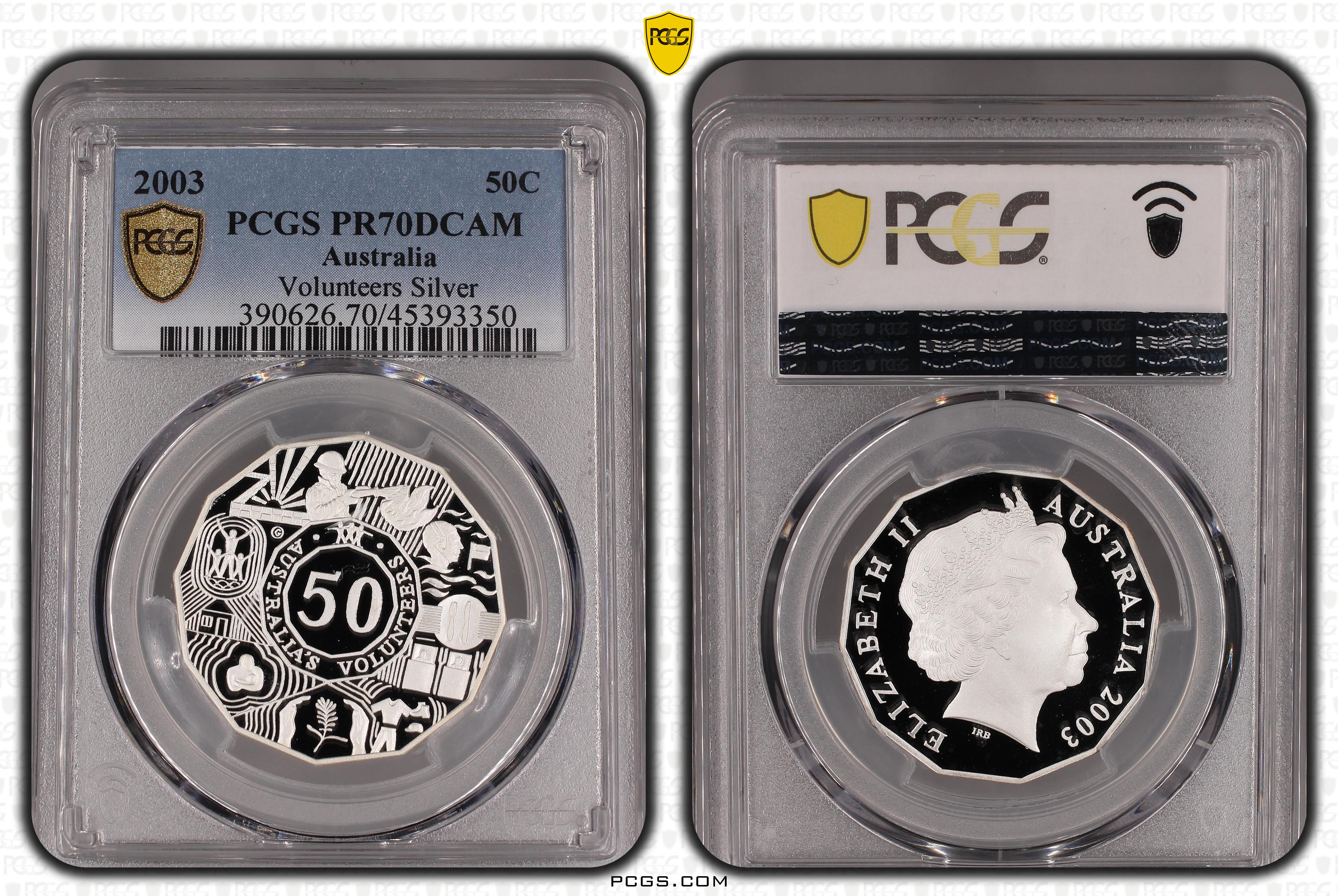 2003 50C Volunteers Ag, DCAM PR70DCAM 认证号45393350, PCGS号390626