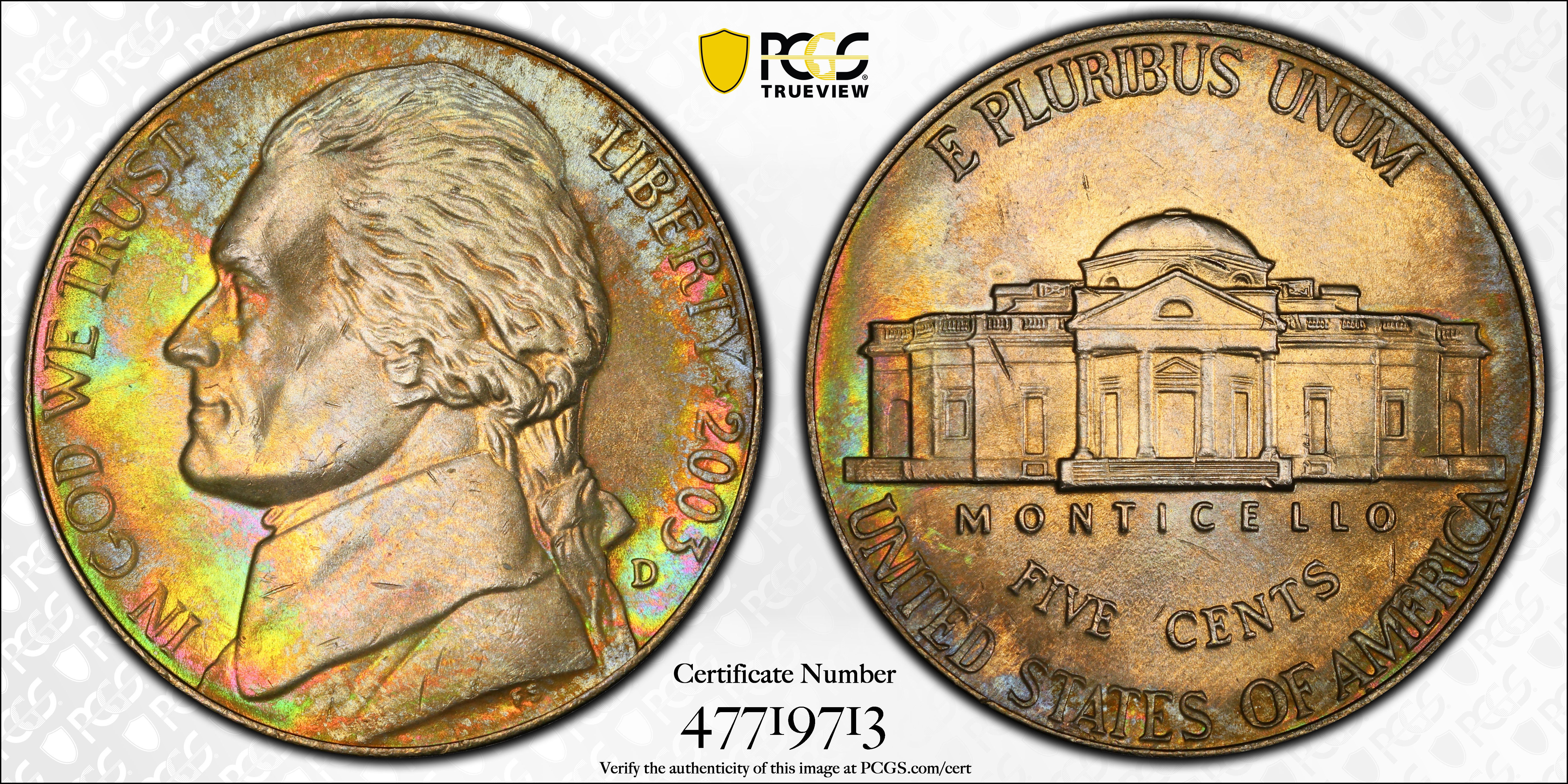 2003-D 5C MS65 认证号47719713, PCGS号4153