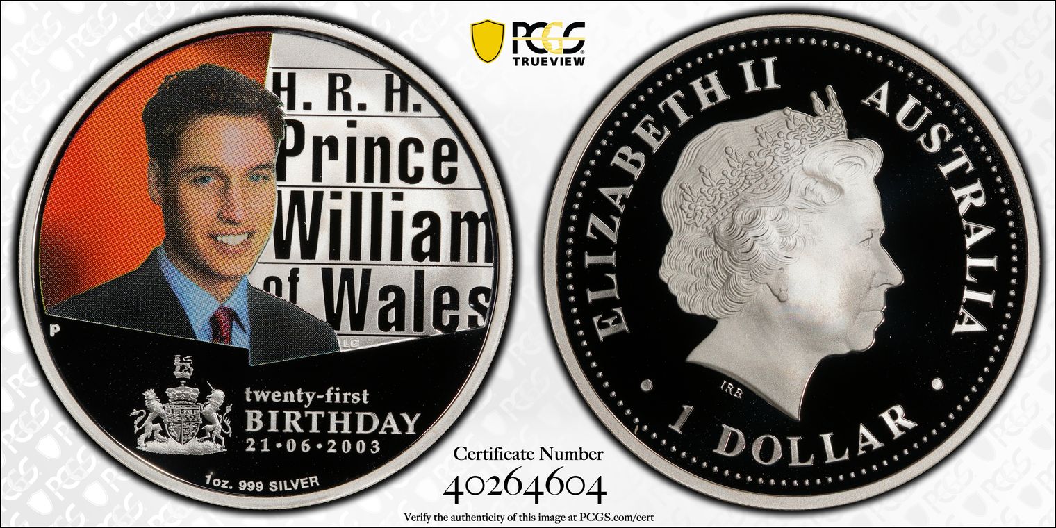 2003-P $1 Prince William 21st Birthday, DCAM PR70DCAM 认证号40264604, PCGS号827053