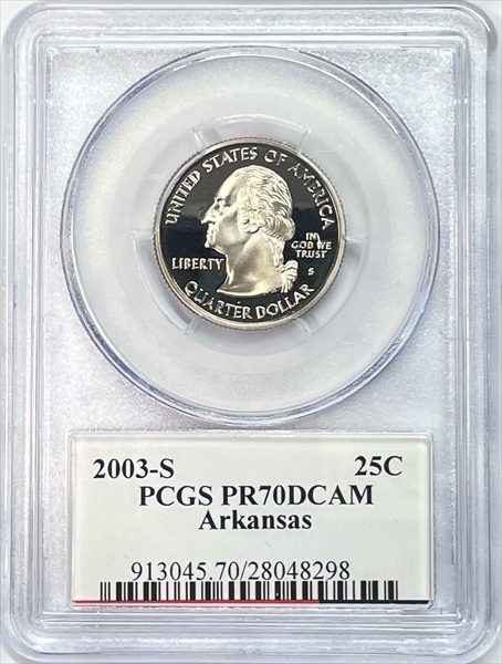2003-S 25C Arkansas, DCAM PR70DCAM 认证号28048298, PCGS号913045