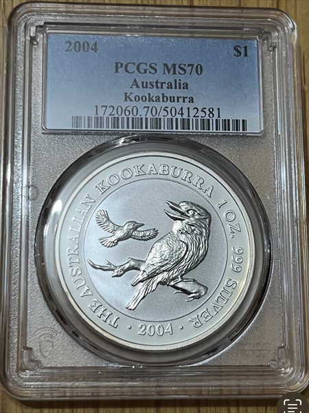 2004 $1 Kookaburra Ag MS70 认证号50412581, PCGS号172060