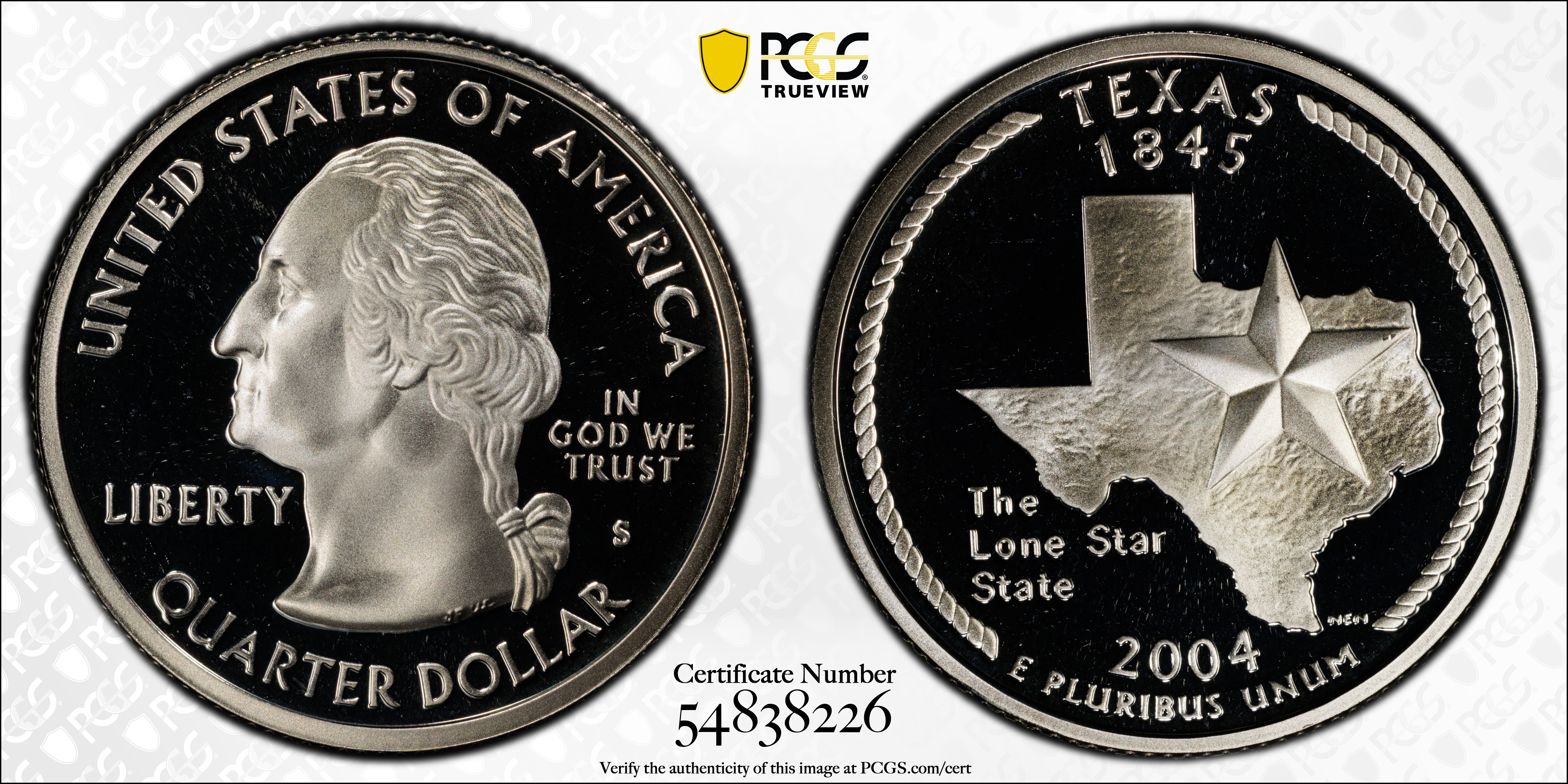2004-S 25C Texas Silver, DCAM PR69DCAM 认证号54838226, PCGS号913052
