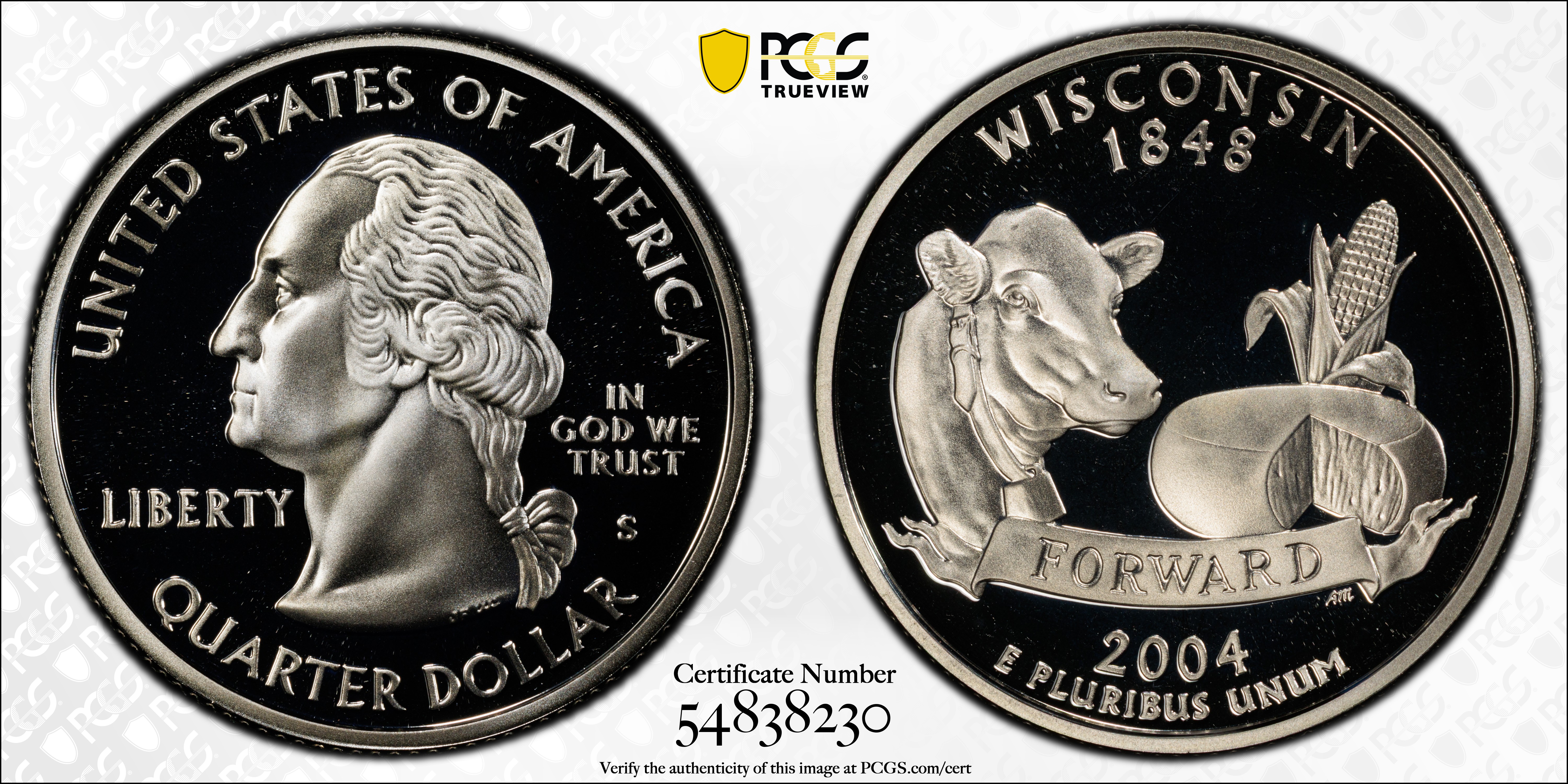2004-S 25C Wisconsin Silver, DCAM PR69DCAM 认证号54838230, PCGS号913056