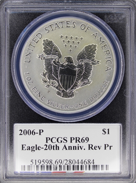 2006-P $1 Eagle-20th Anniv. Rev Pr Moy Signature PR69 认证号28044684, PCGS号519598