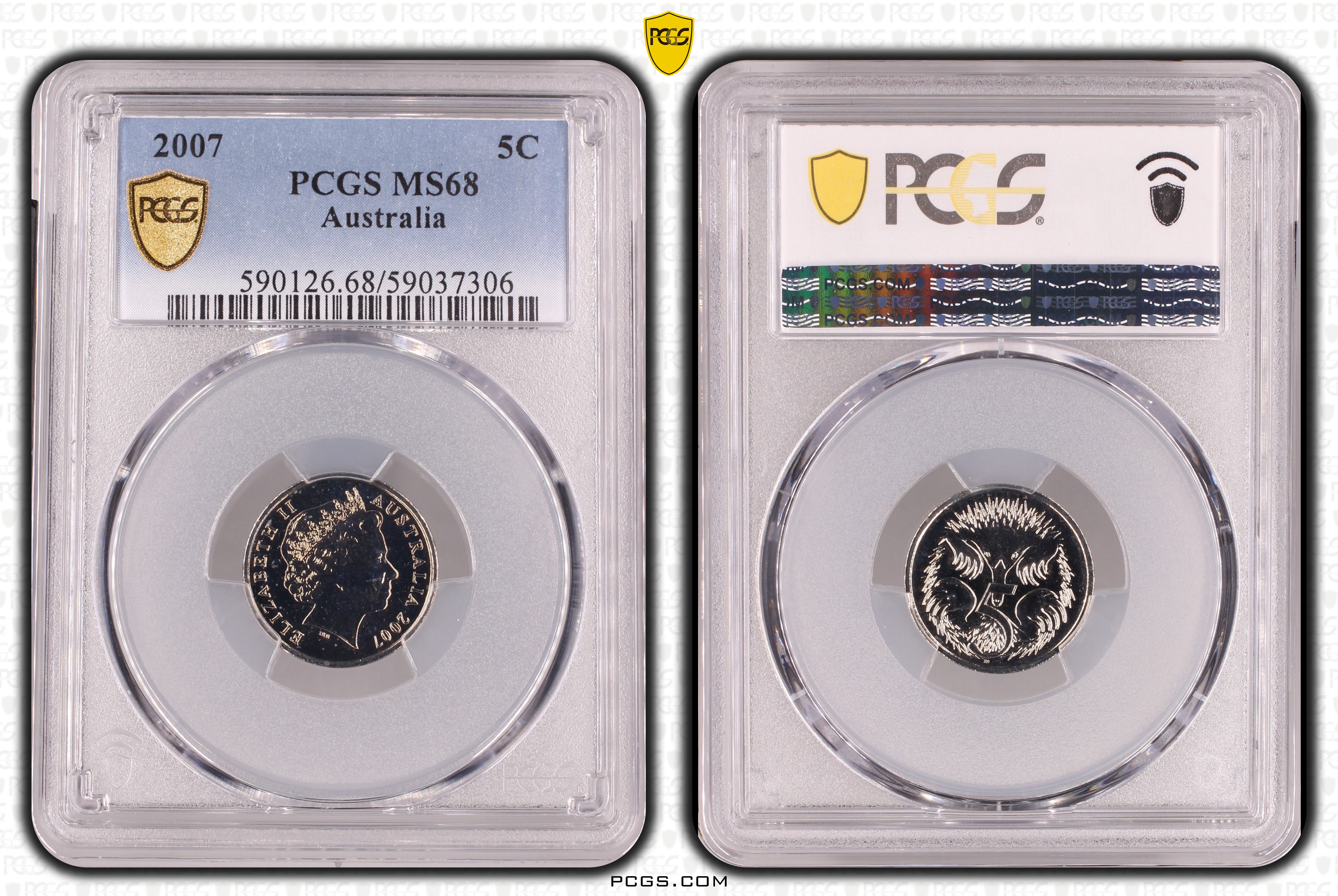2007 5C MS68 认证号59037306, PCGS号590126