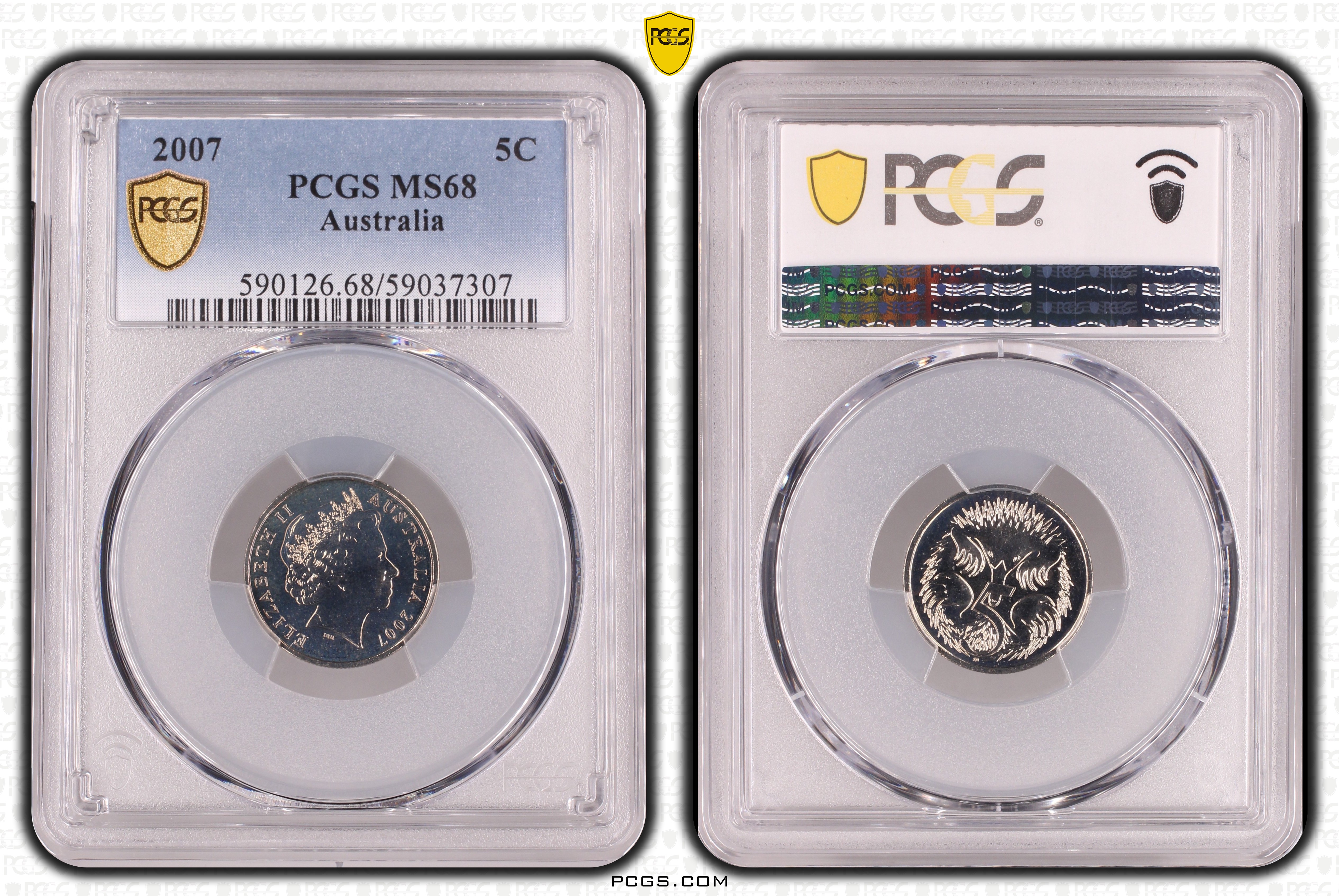 2007 5C MS68 认证号59037307, PCGS号590126