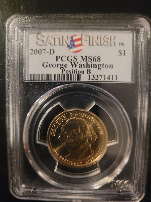 2007-D $1 G. Washington - Pos. B Satin Finish SP68 认证号13371411, PCGS号390549